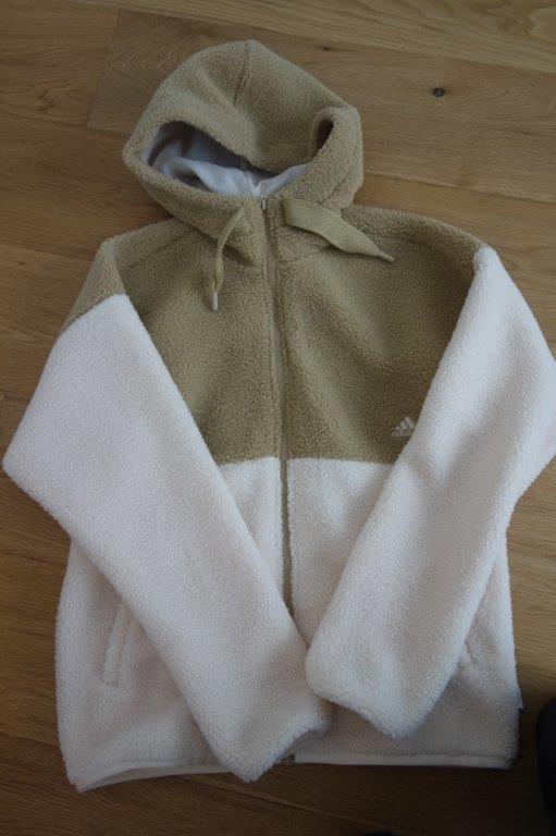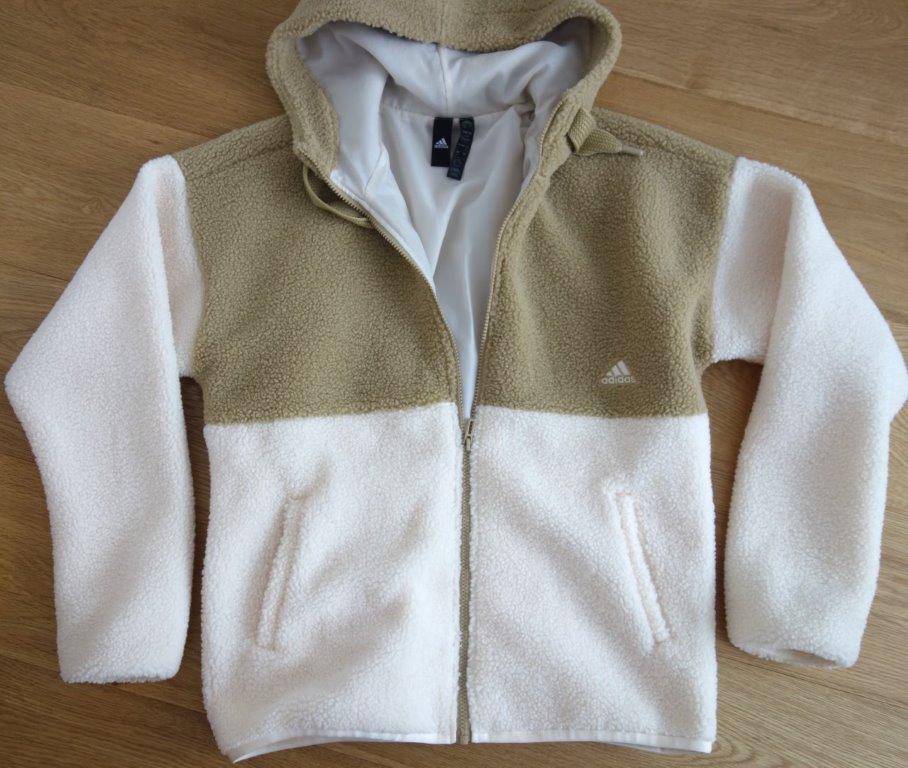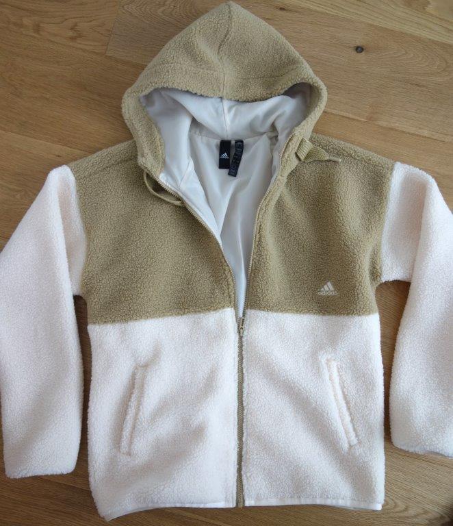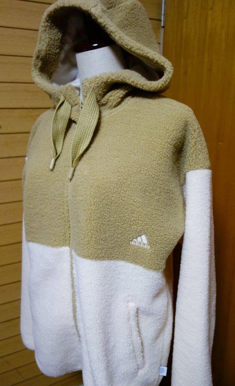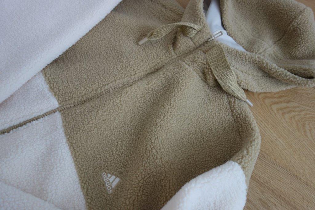 adidas アディダス ボア フリースジャケット size L ベージュ×アイボリー BOA ルーズフィット フルジップジャケット ゆったりめ