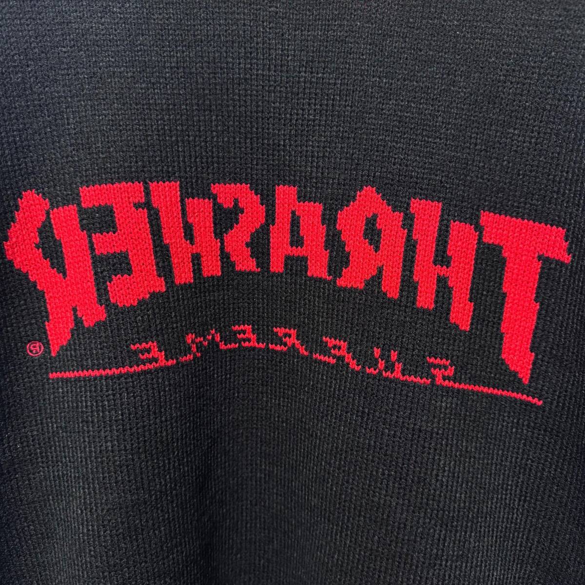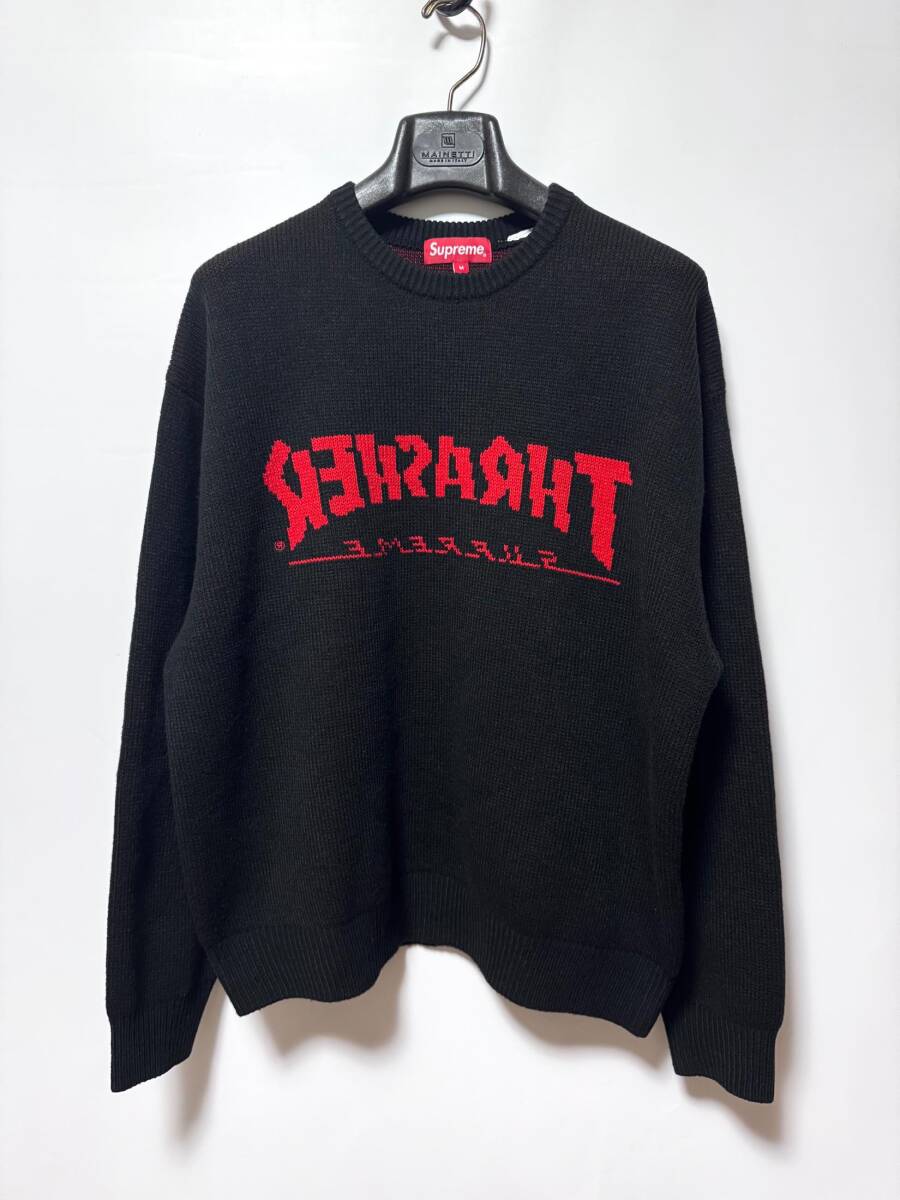 SUPREME シュプリーム Thrasher ロゴジャガード ニット M 送料600円〜 クルーネックセーター スラッシャー コラボ Sweater メンズ ブラック