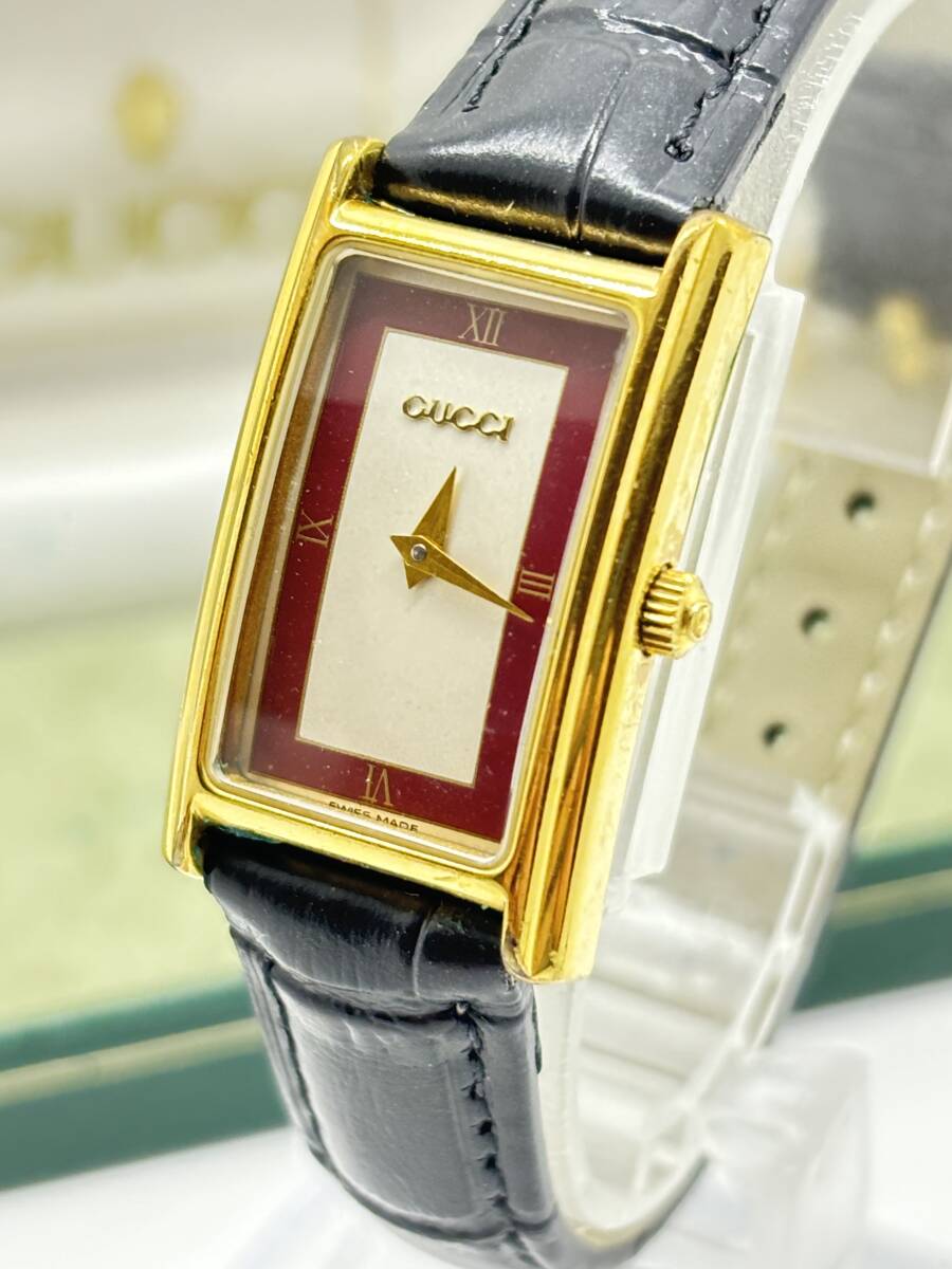[Exc+5 箱付] GUCCI 2600L マッドレッド クォーツ ゴールド レディース腕時計 稼働品 24100905zaiko