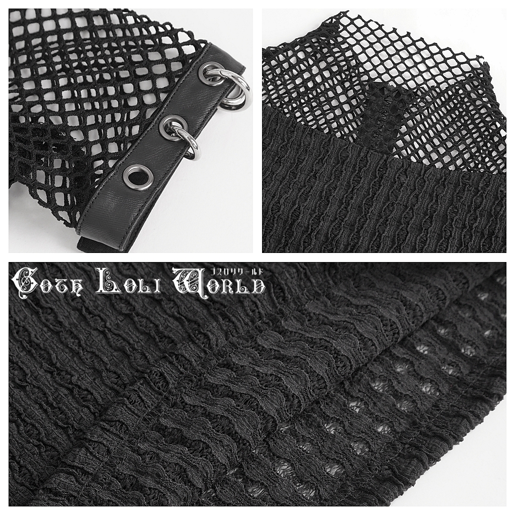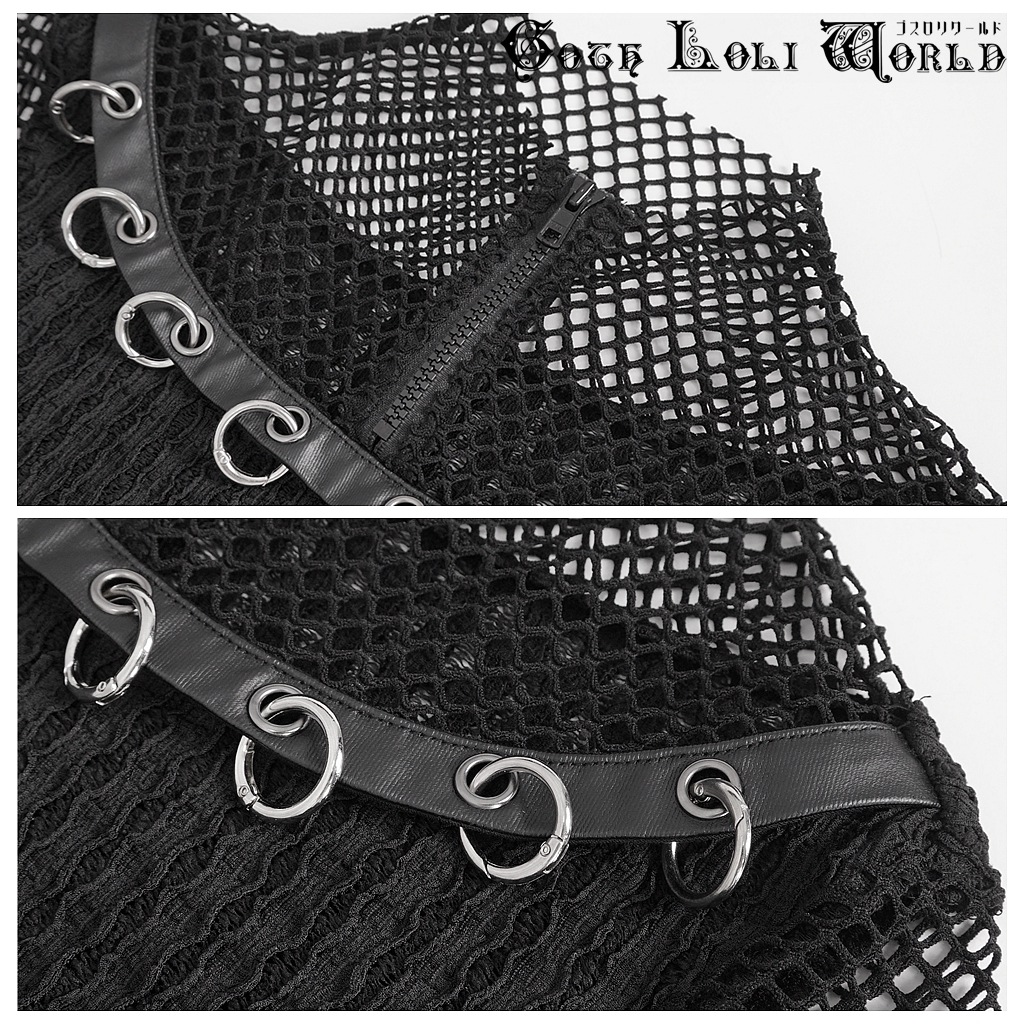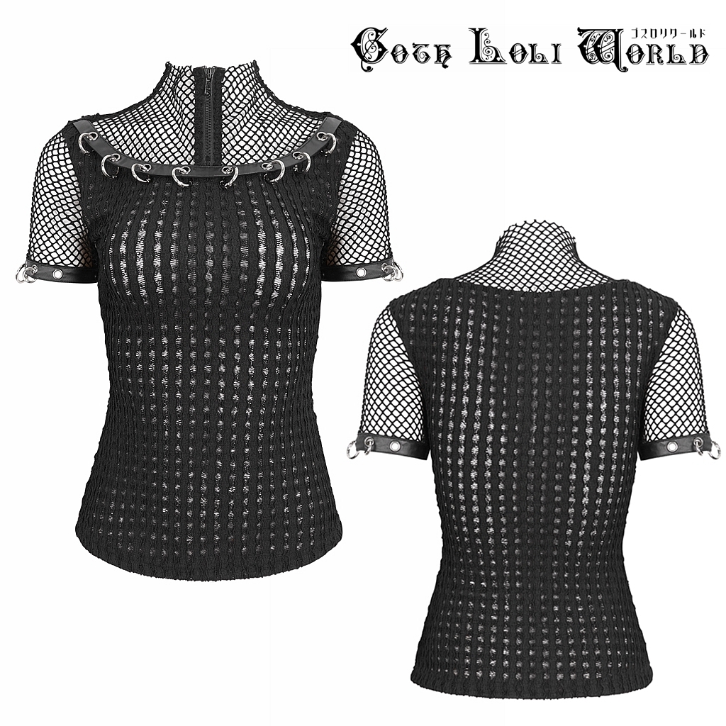 即納 TT265-XS シースルーフィッシュネットハーフシップ半袖タイト カットソー ファッション ゴシック パンク ロック ビジュアル系