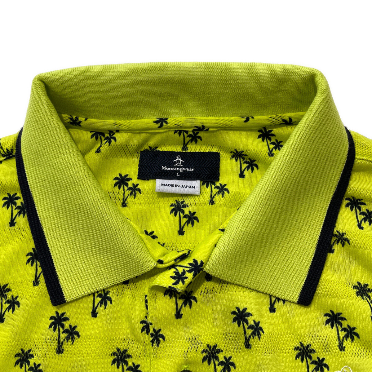 coco 中古【値下げ】 マンシングウェア Munsing wear メンズ 半袖ポロシャツ L 黄系 ヤシの木柄 レターパックプラス発送可 115602