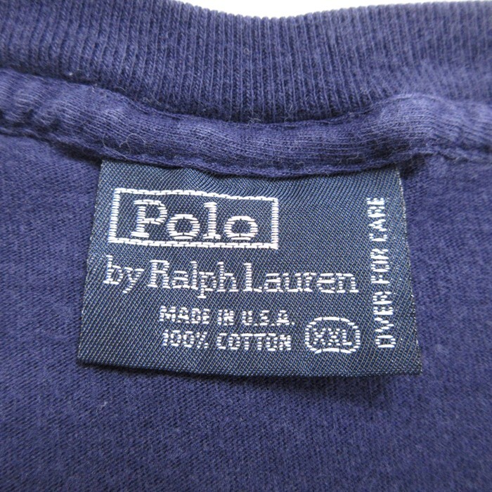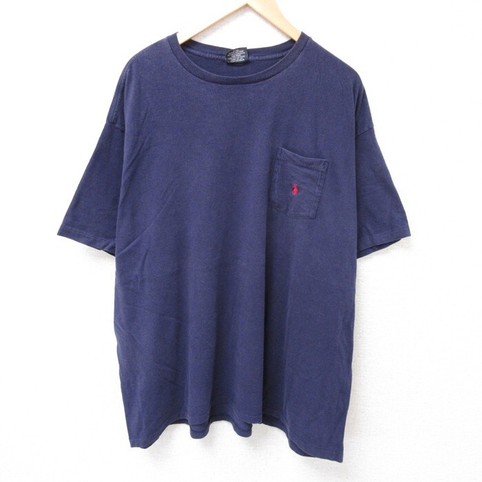 【商品名】 XL★古着 ラルフローレン Ralph Lauren 半袖 ビンテージ ブランド Tシャツ メンズ 90年代 90s ワンポイントロゴ 胸ポケット付き 大きいサイズ コットン クルーネック USA製 紺【spe】