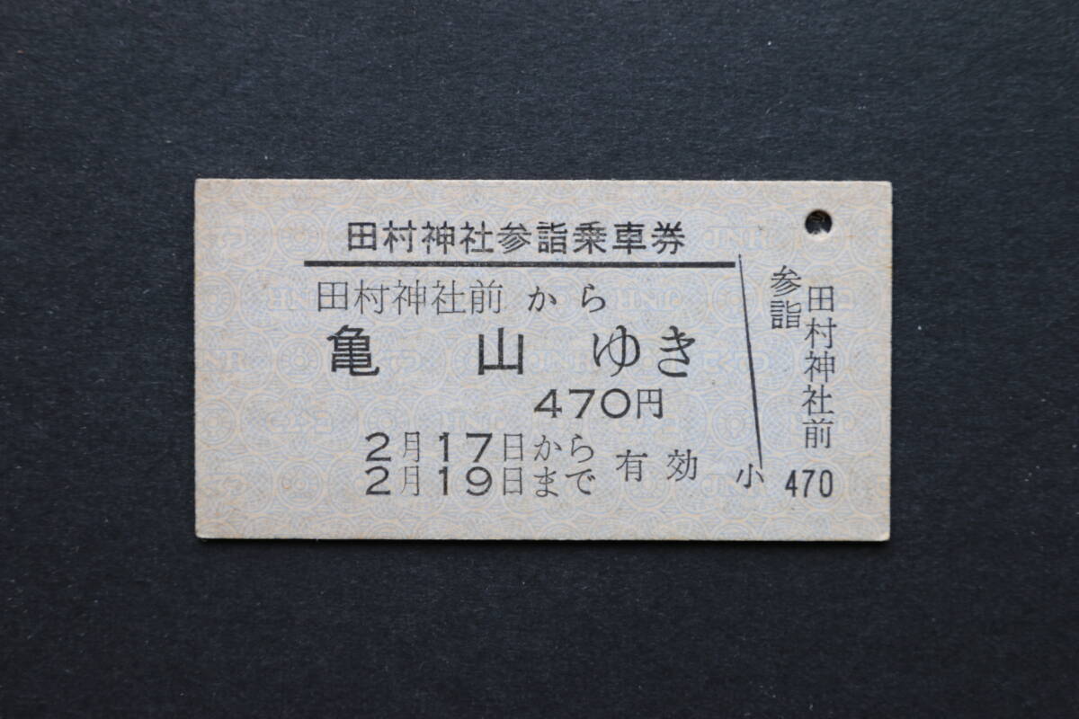 田村神社参詣乗車券 田村神社前から 亀山ゆき 470円