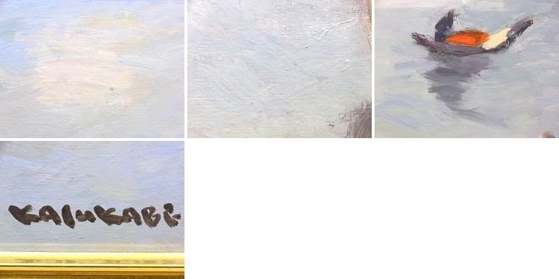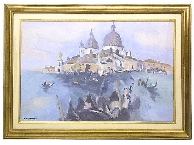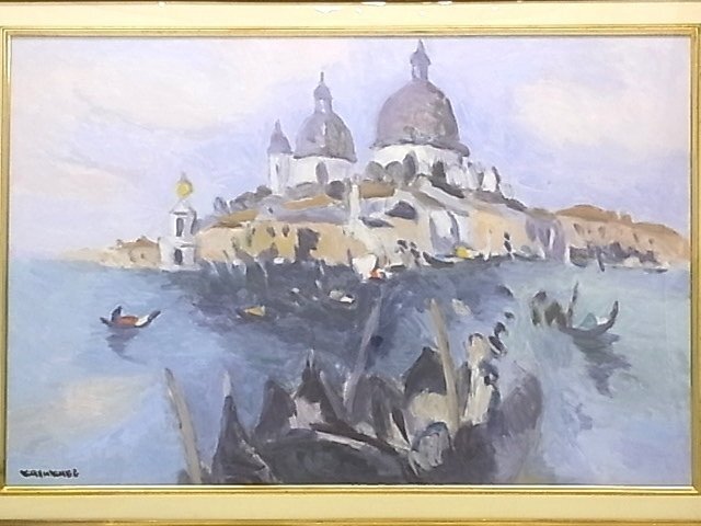 e13765 真作保証 油彩 風景画 春日部 洋 「ゴンドラ 1994」 M30 額縁 同梱不可