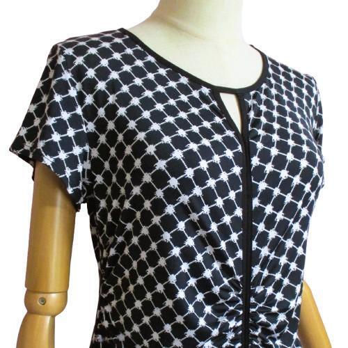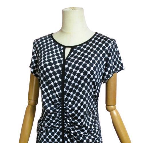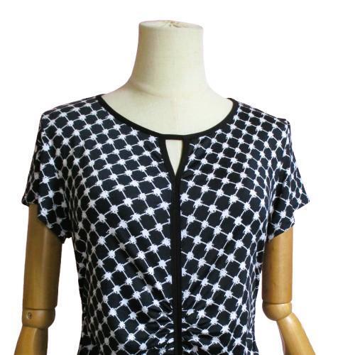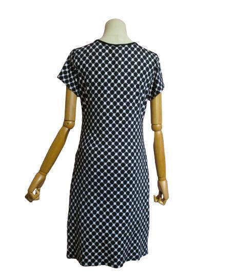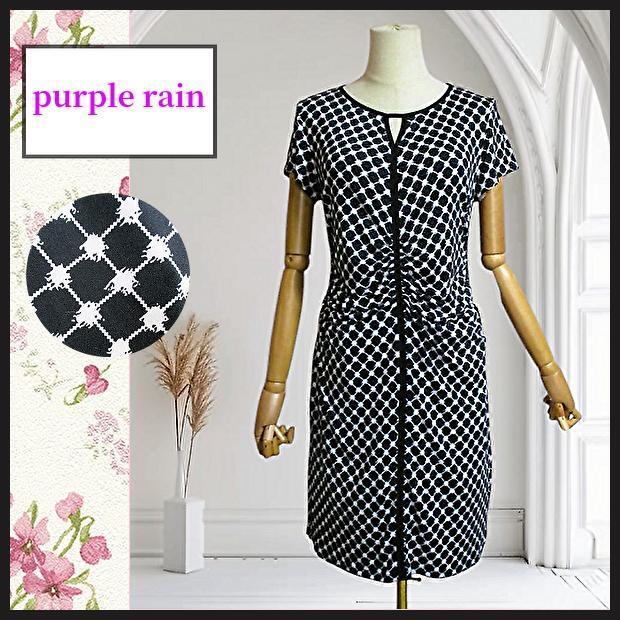 【パープルレイン】ストレッチジャージワンピース 美シルエット ダークネイビー purple rain アメリカ製 伸縮性 紺 総柄 匿名発送
