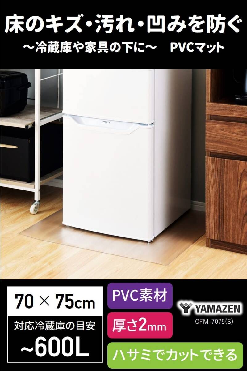 [山善] 冷蔵庫マット 傷防止マット 幅70×奥行75cm 厚さ2mm PVC 耐熱 防水 軽量 凹み防止 CFM-7075(S) 賃貸