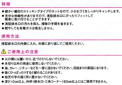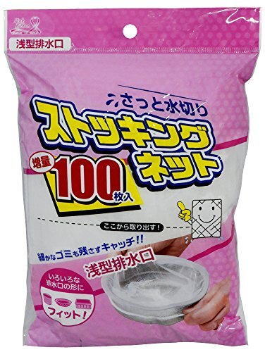 説明 浅型排水口用 水切りゴミ取りネット 伸びるストッキングタイプなので、浅型排水口のサイズにかかわりなく簡単装着 目の細かいストッキングタイプネットなので小さなゴミもしっかりキャッチ しっかりフィットしゴミは逃さず水切れ抜群 毎日取り替える方でも安心の増量お買い得100枚入り