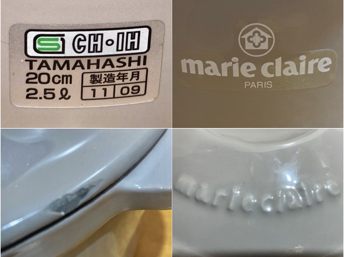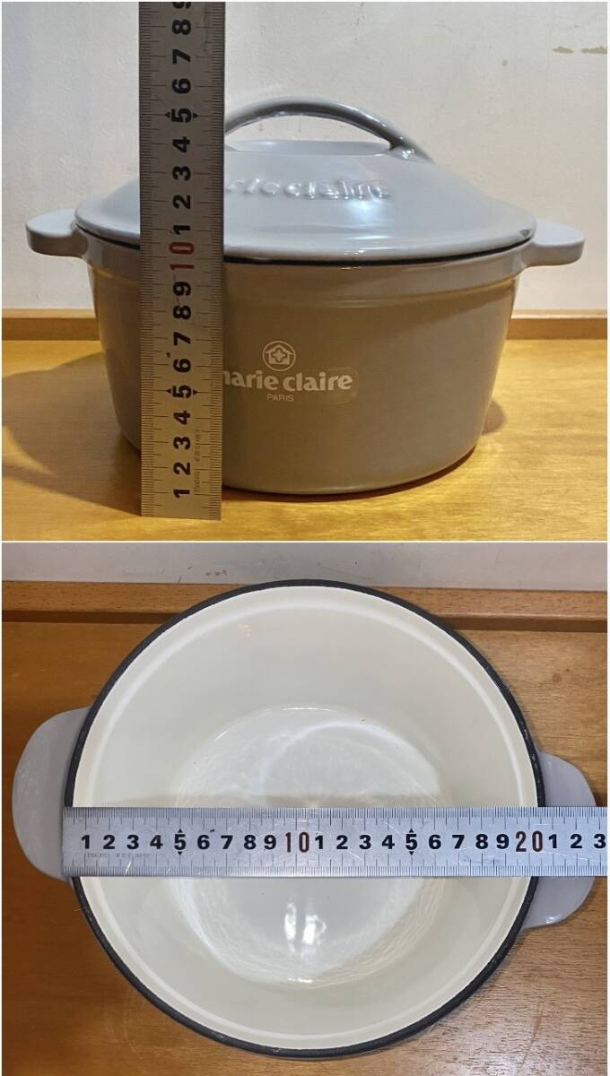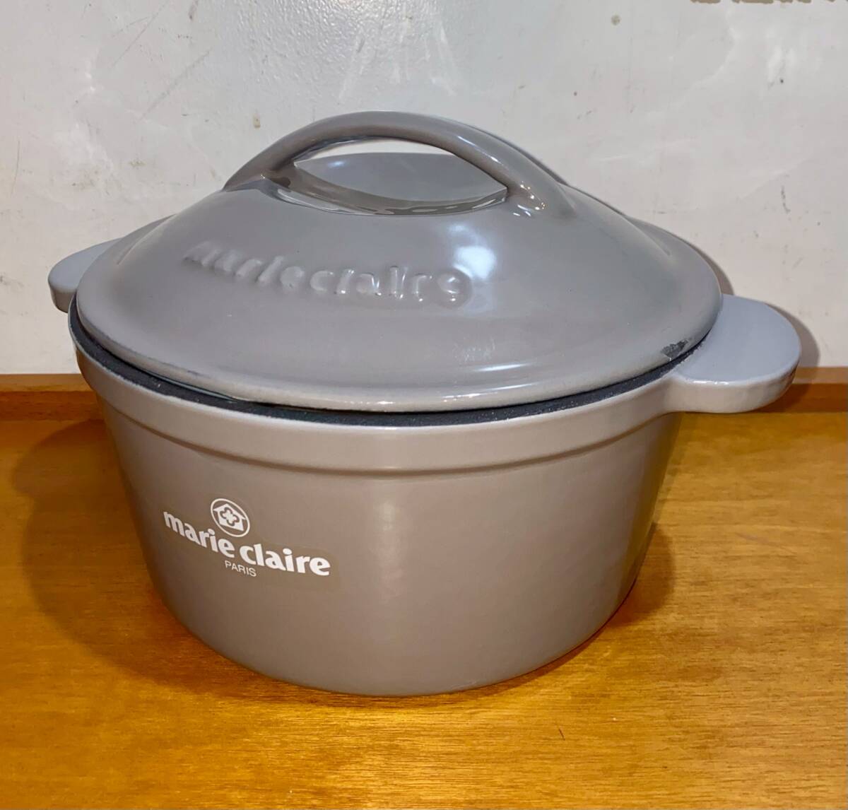 marie claire/マリ・クレール 鋳物 ホーロー鍋 グレー フランス 両手鍋 調理器具 長期保管 未使用現状品