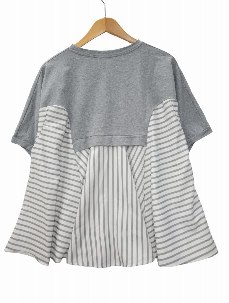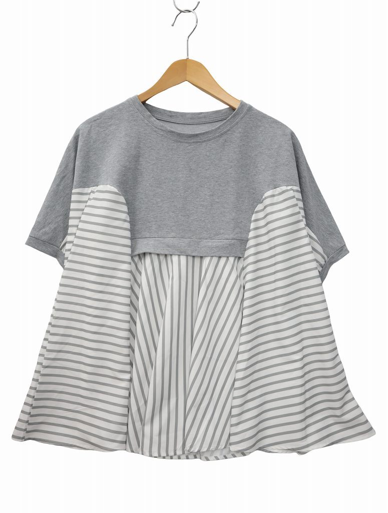 205 ZERO ストライプ スウェット 異素材 切替 カットソー M-L GRAY(グレー) 春夏 レディース