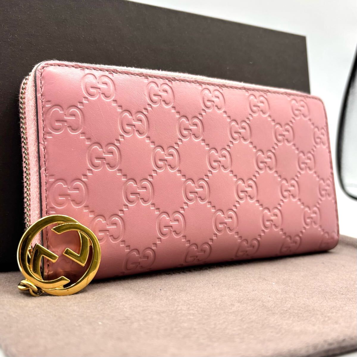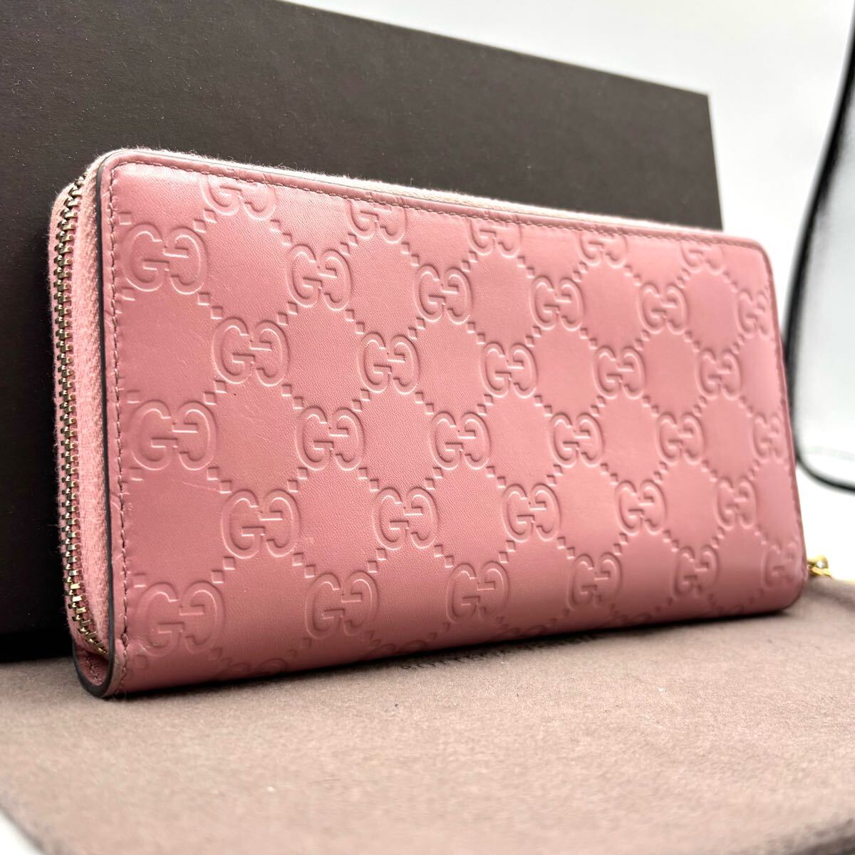 o46 GUCCI グッチ 長財布 ピンク グッチシマ レザー