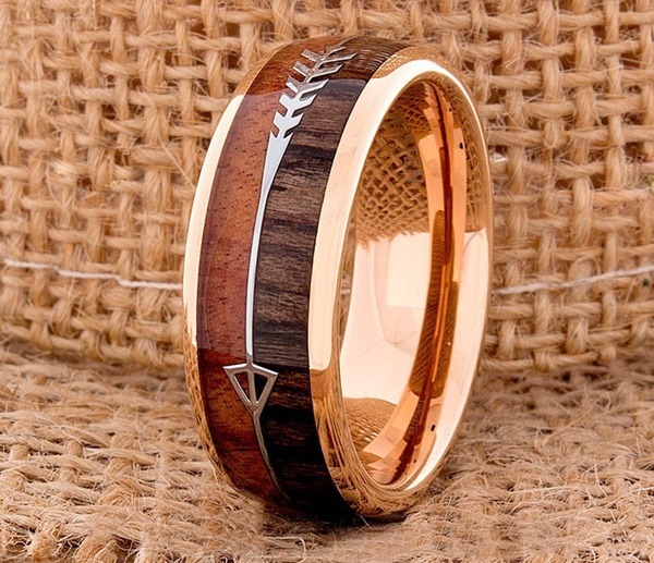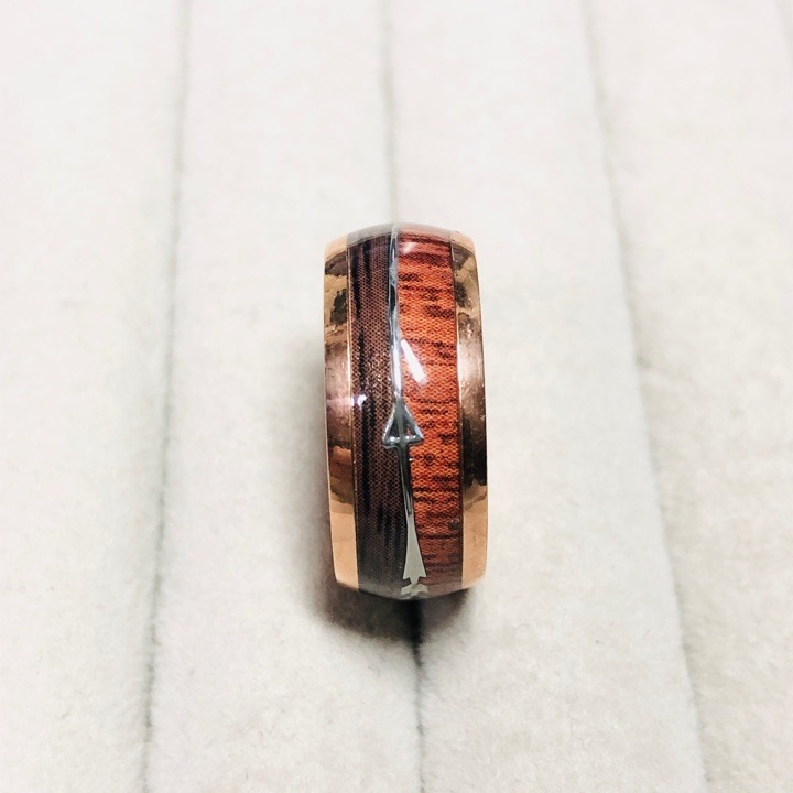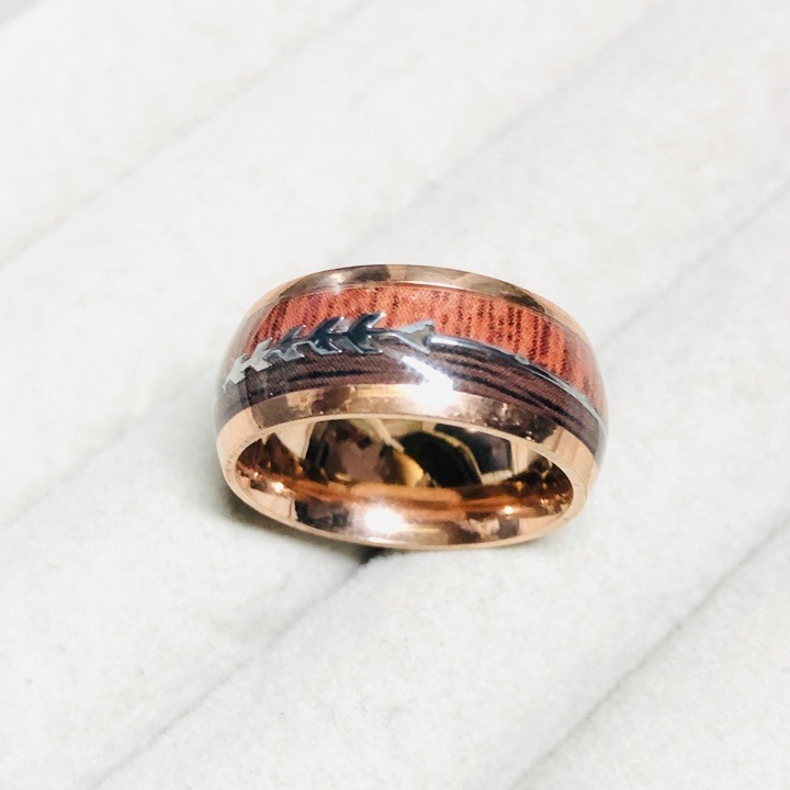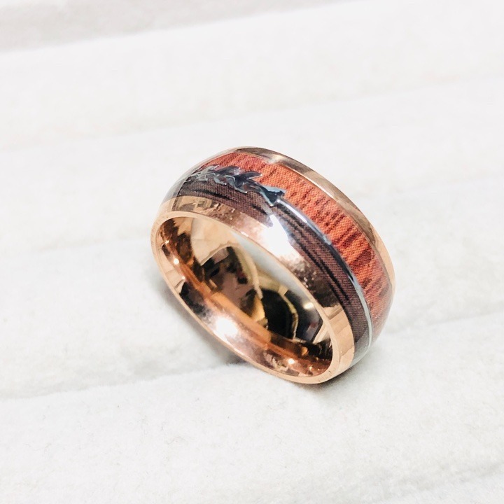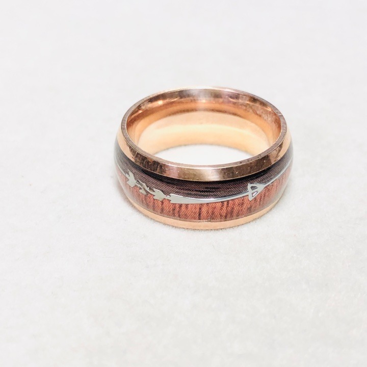 【YB324-6】指輪 リング シンプル 2色 ブランド 木目 アンティーク アメリカ ゴールド 太め 弓矢 ウッド調 厳つい ダークオーク チーク
