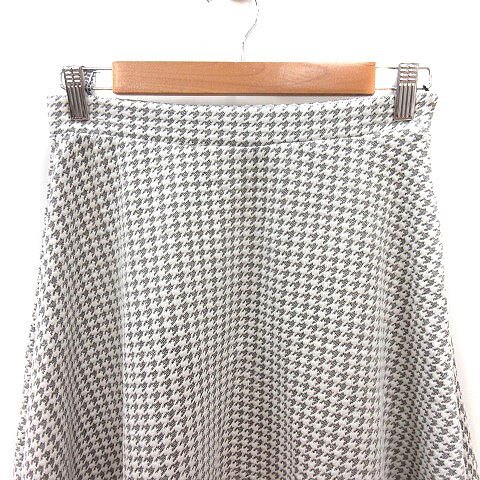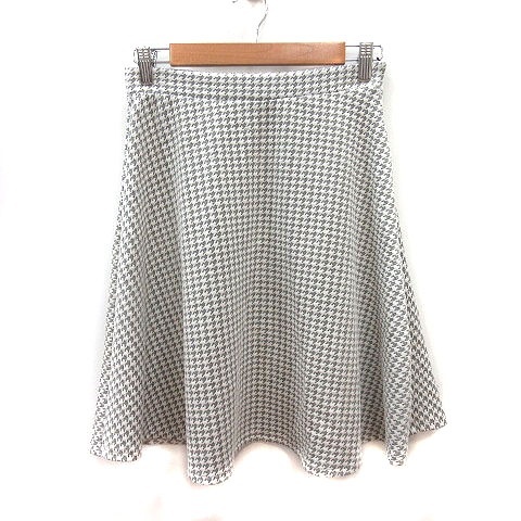 ナチュラルビューティーベーシック NATURAL BEAUTY BASIC フレアスカート ひざ丈 千鳥格子 M 白 ホワイト グレー /MS レディース