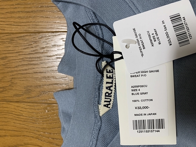 4 新品 25ss AURALEE SUPER HIGH GAUGE SWEAT P/O