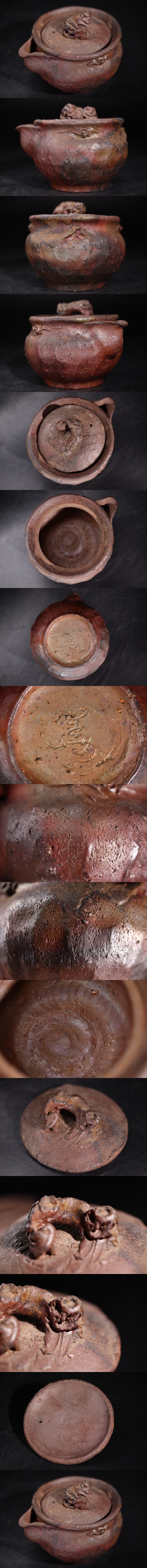 | 花房秀安 造 備前 霊芝 摘 宝瓶 / 備前焼 細工物 泡瓶 茶器 煎茶道具 手捻り 手造 .G2129 |