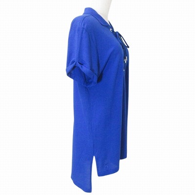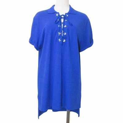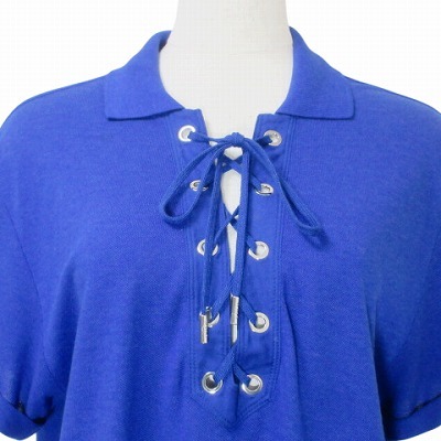 ポロ ラルフローレン POLO RALPH LAUREN ポロシャツ レースアップ 半袖 チュニック丈 ポニー ワンポイント刺? S 青 ブルー X レディース
