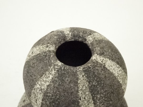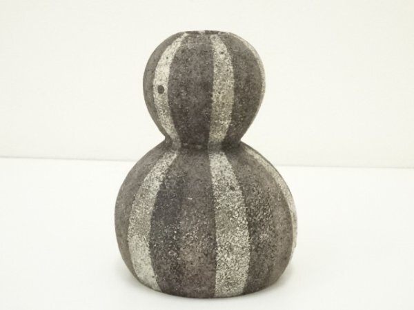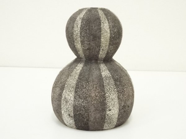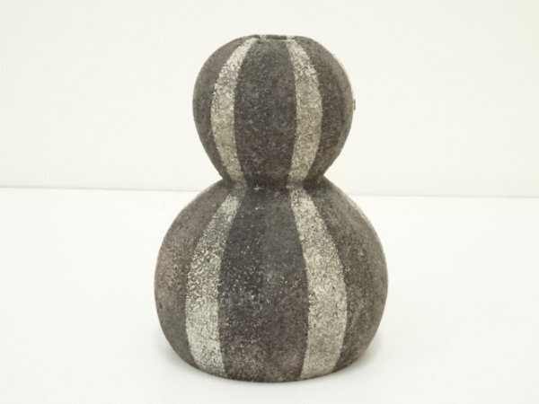 ys7415721; 佐藤和彦造 灰陶泥彩瓢形花瓶【道】