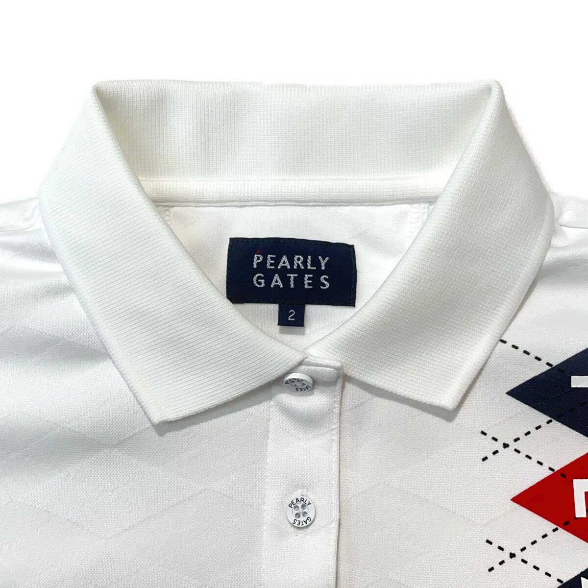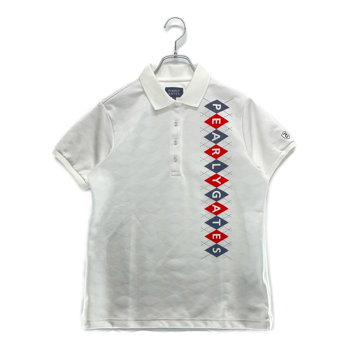 coco 中古【SALE】パーリーゲイツ PEARLY GATES レディース 半袖ポロシャツ 2(L) 白 アーガイル柄 総柄 ネコパケ発送可 98750