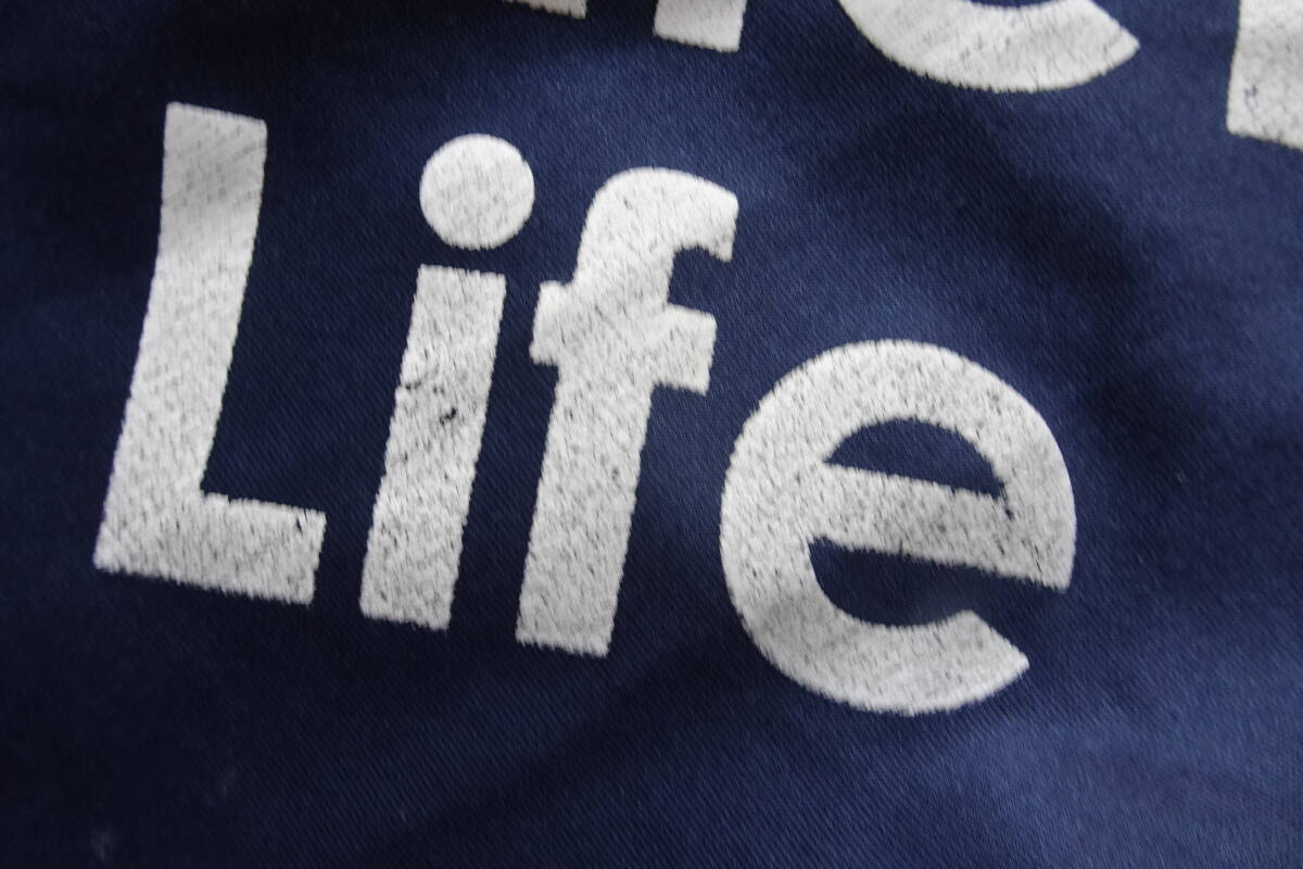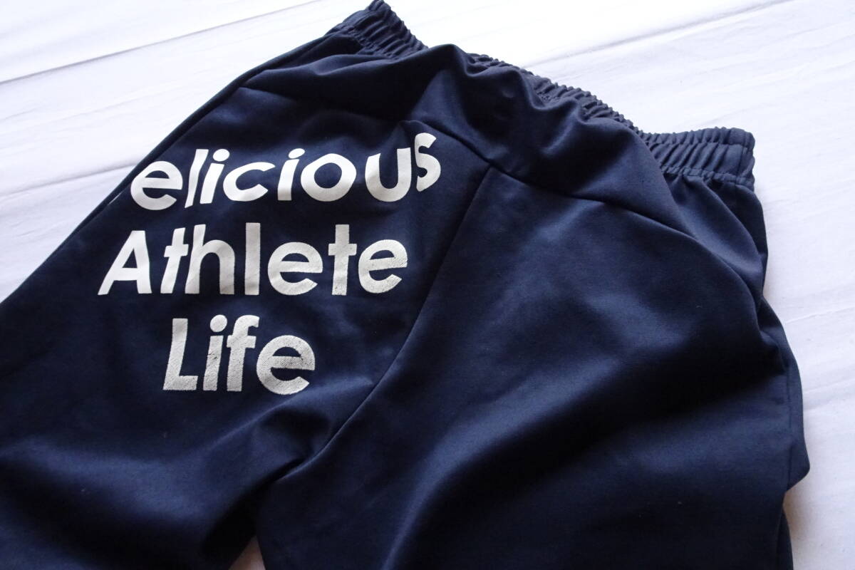 前太もも、おしり部分、ロゴ、文字プリント入りです。