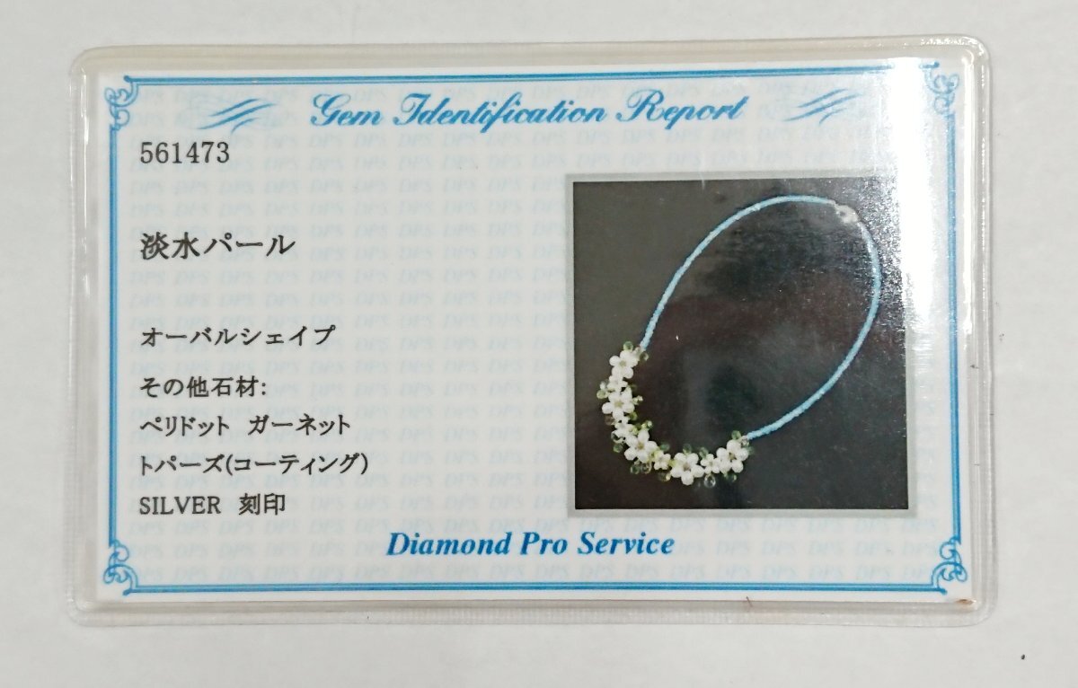 ●カード式鑑別書 ※日焼け等の劣化がかなりみられます。特にネックレスの画像が変色しております。
