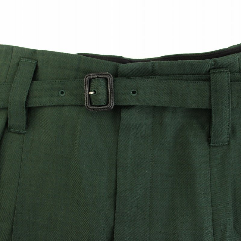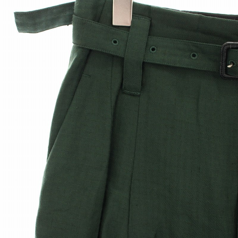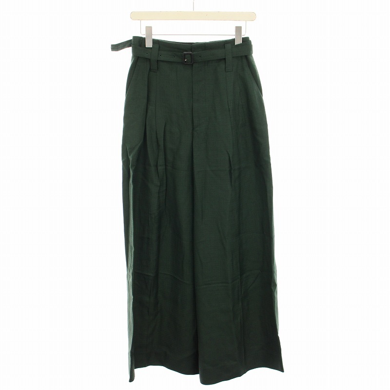 トゥモローランド TOMORROWLAND .B レーヨンリネンタックワイドパンツ ハイウエスト ベルト 36 緑 グリーン 48-04-14-0410