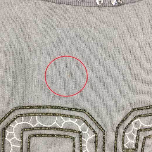 | 商品説明 | 【管理番号】 010112 【ブランド名】 PATRIZIA PEPEパトリツィア ペペ 【アイテム】 ビジュー付き半袖トレーナー 【サイズ】 1 平置採寸(裄丈:約43cm・身幅:約52.5cm・着丈:約52.5cm) 【色・柄】 グレー 【素材】 綿100% 【外観ランク】ABランク 【商品補足説明】 胸元に0.2cm程のシミがあります。両袖口が変色しています。 | ||