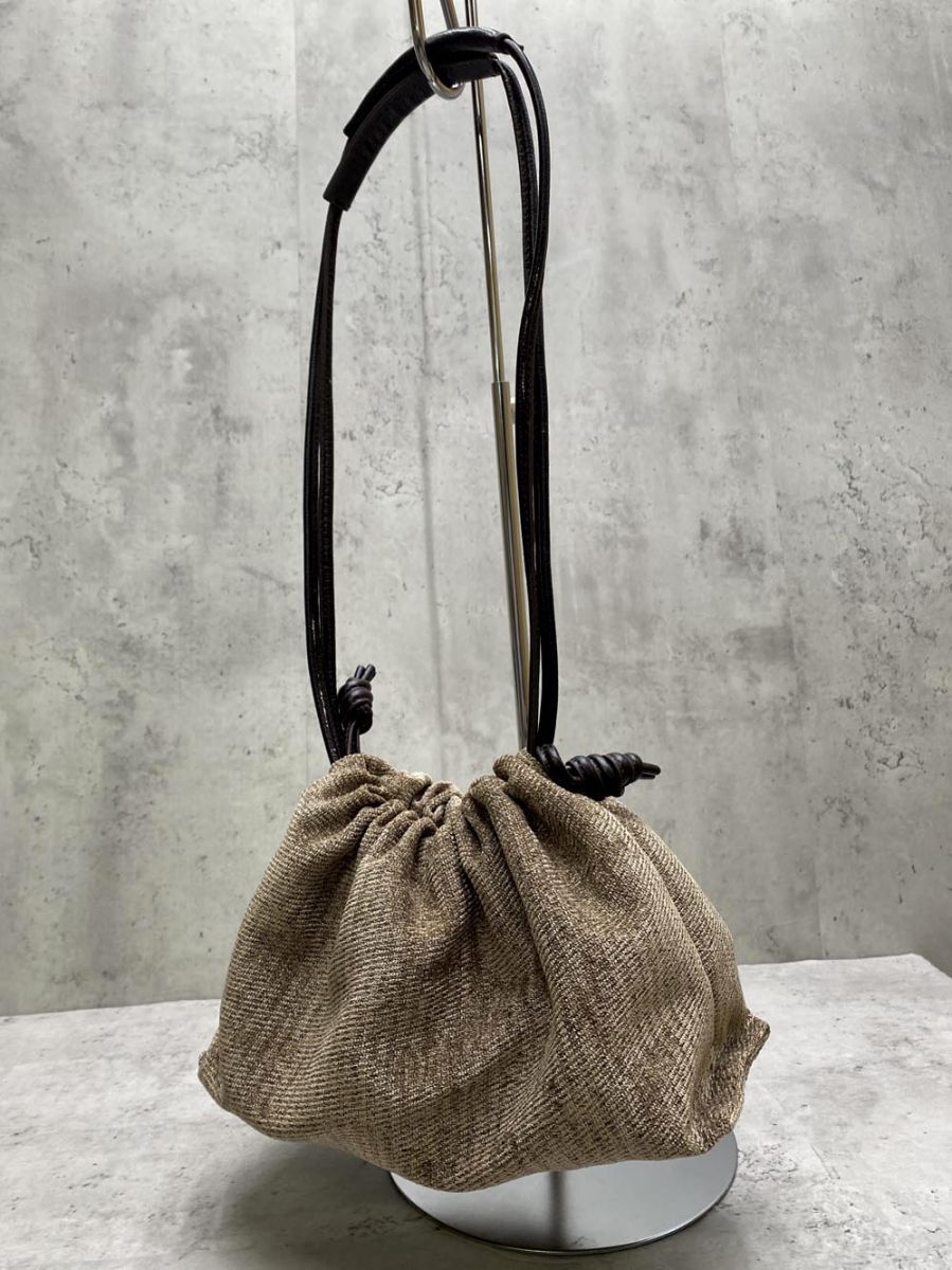 商品の状態 | 巾着を絞ると、巾着紐でショルダーバッグにもなります。 巾着紐の革にやや剥がれがあります。 底面角にやや汚れがあります。 商品に目立つヨゴレなど無く、USEDとして良い状態です。 (当方管理番号:syfg228579-m) | ||||||||