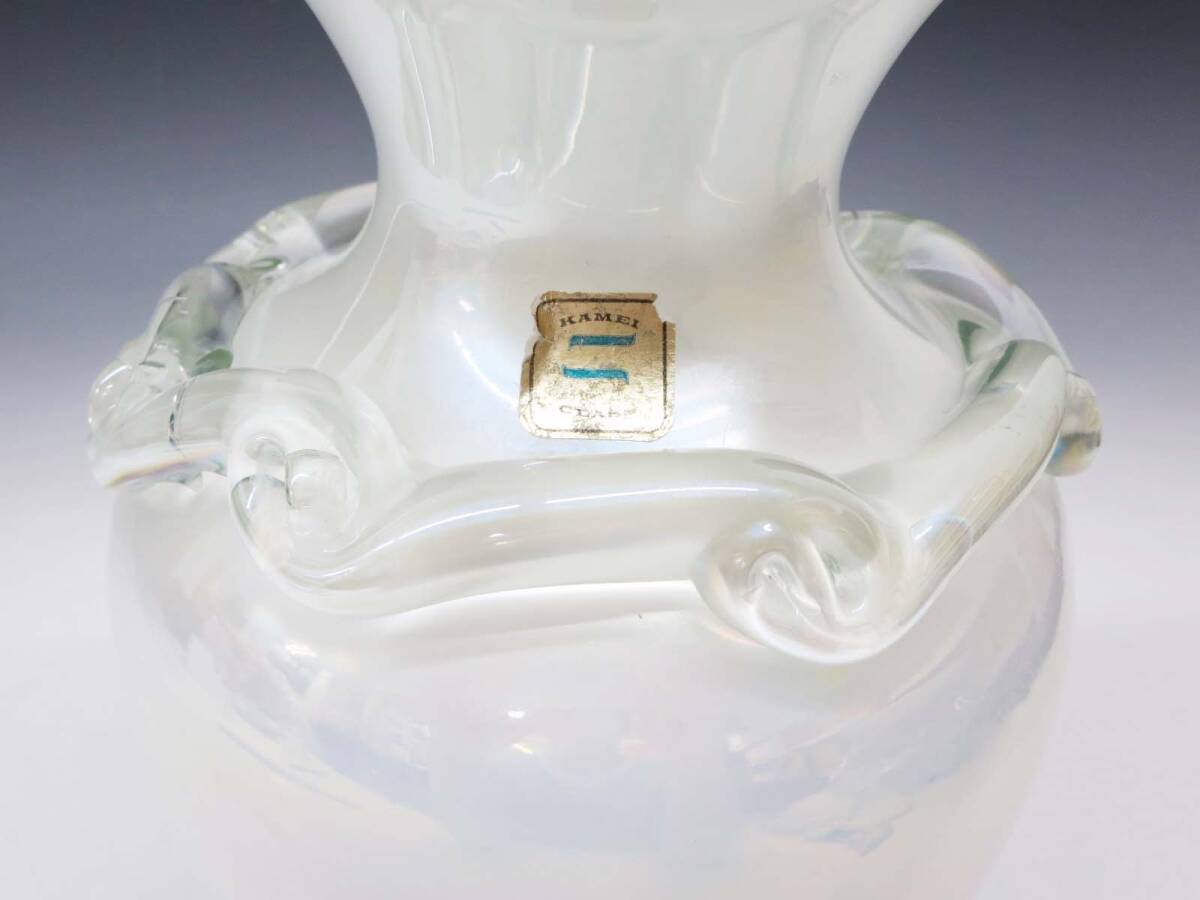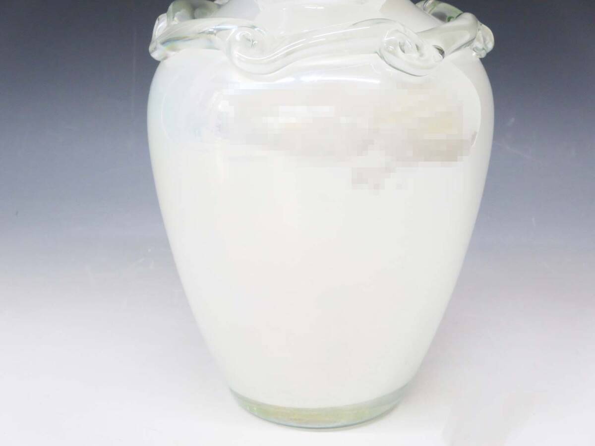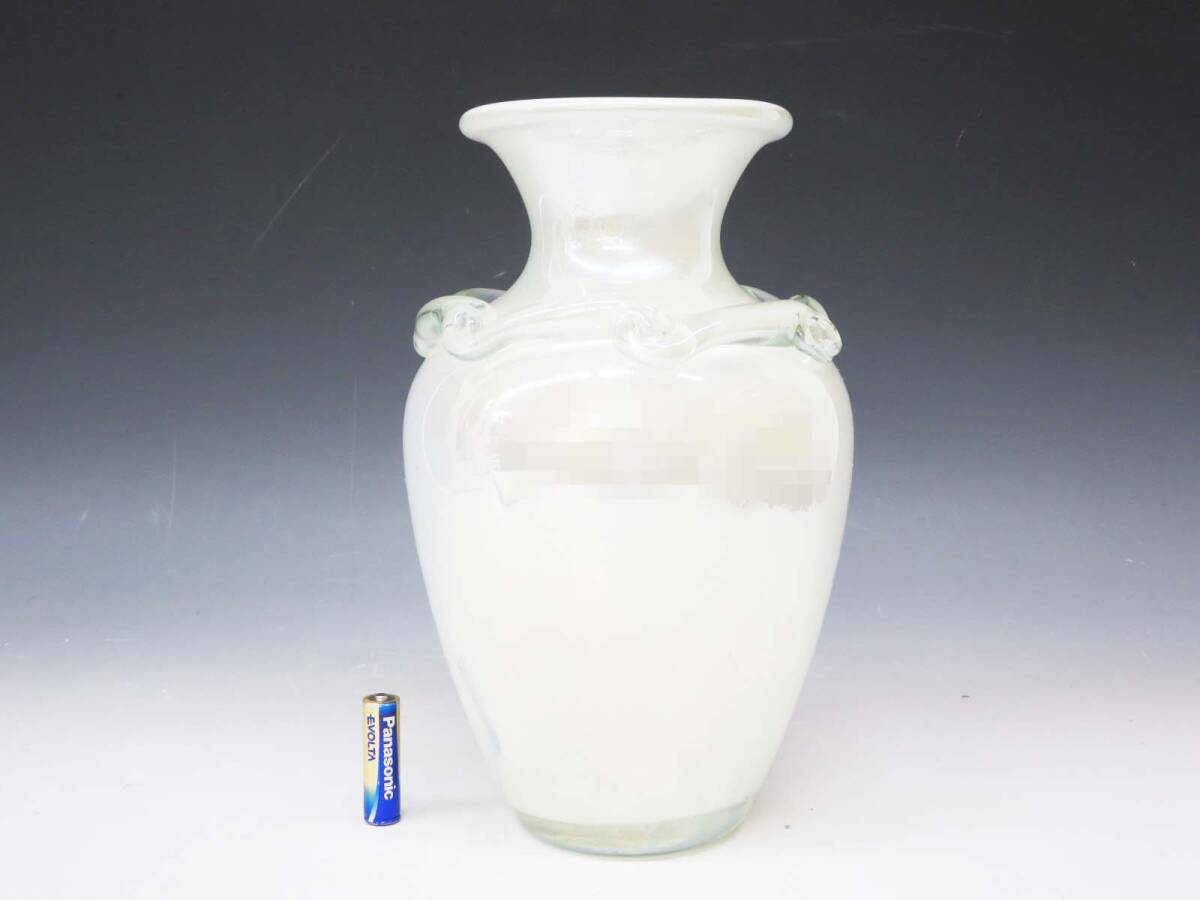 ◆(NS) KAMEI GLASS カメイガラス ガラス製 花瓶 花器 花入 フラワーベース 約27cm×約17cm ホワイトパール 白 工芸品 インテリア雑貨