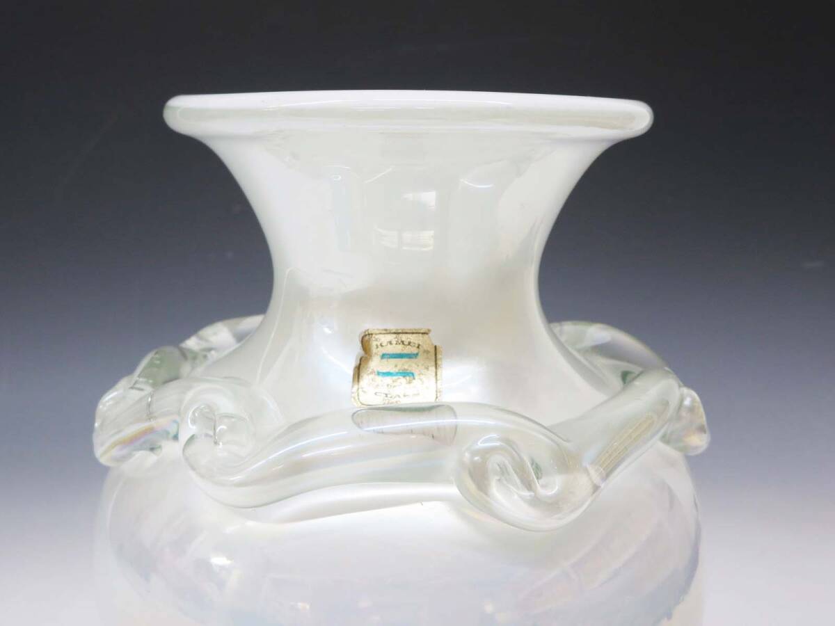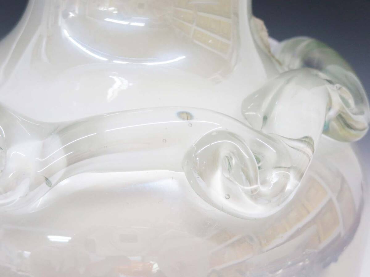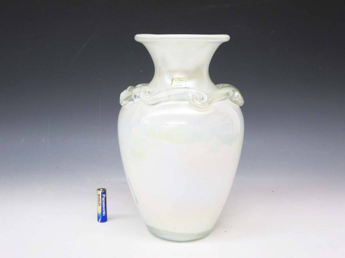 ◆(NS) KAMEI GLASS カメイガラス ガラス製 花瓶 花器 花入 フラワーベース 約27cm×約17cm ホワイトパール 白 工芸品 インテリア雑貨