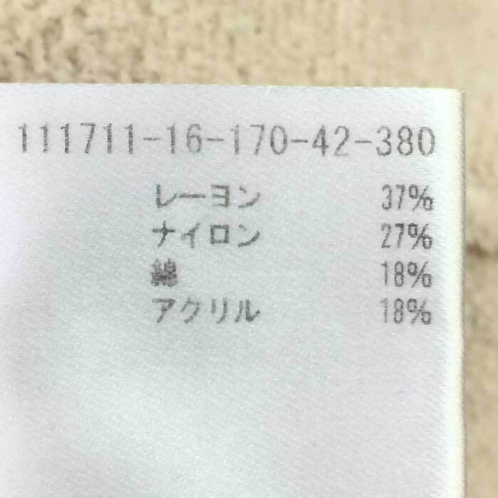 | 商品説明 | 【管理番号】 010114 【ブランド名】 CATHRINE HAMMELカトリーネ ハメル 【アイテム】 ドルマンスリーブカットソー パイル地 【サイズ】 平置採寸(裄丈:約48.5cm・身幅:約43.5cm・着丈:約63cm) 【色・柄】 ベージュ 【素材】 レーヨン37%ナイロン27%綿18%アクリル18% 【外観ランク】Aランク 【商品補足説明】 サイズは不明です。胸元に0.2cm以下のシミが点在しています。 | ||
