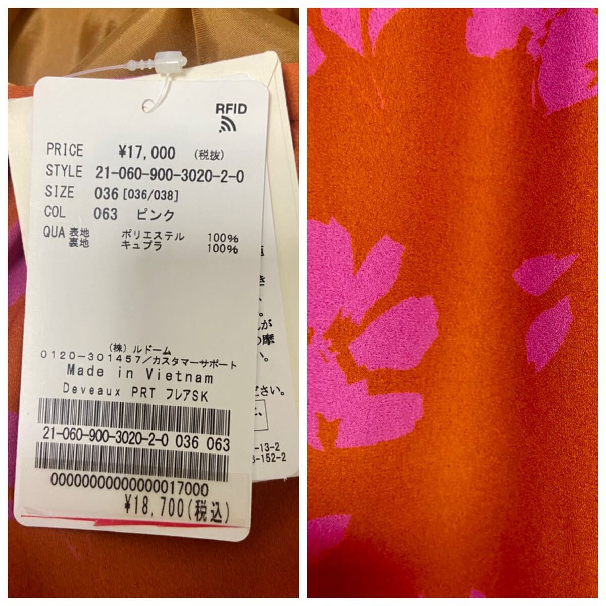 IENAのDeveaux(デヴォー)プリントフレアスカート、タグ付きの新品です。保管上の汚れやダメージはありませんが、クローゼット保管ですので神経質な方はご遠慮ください。