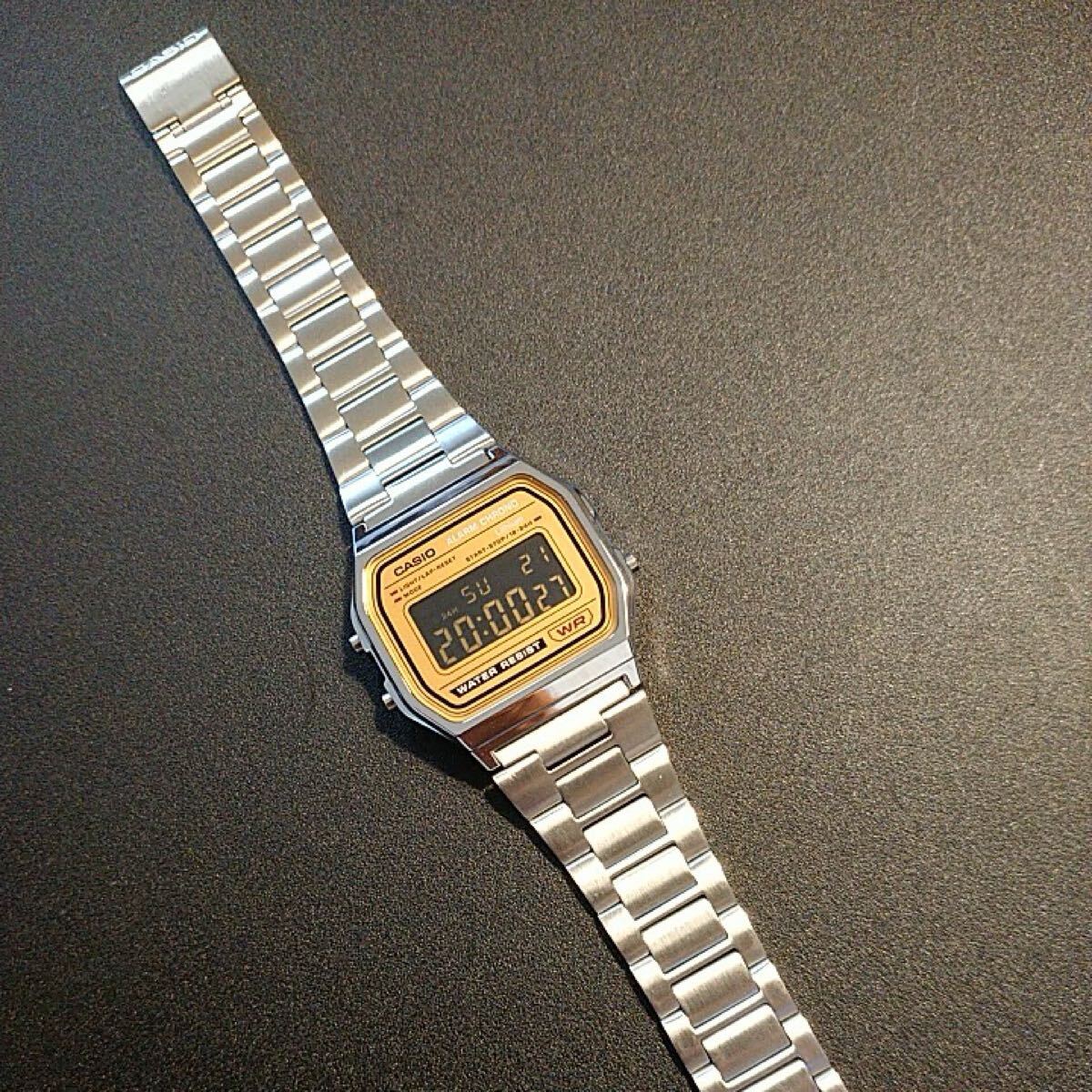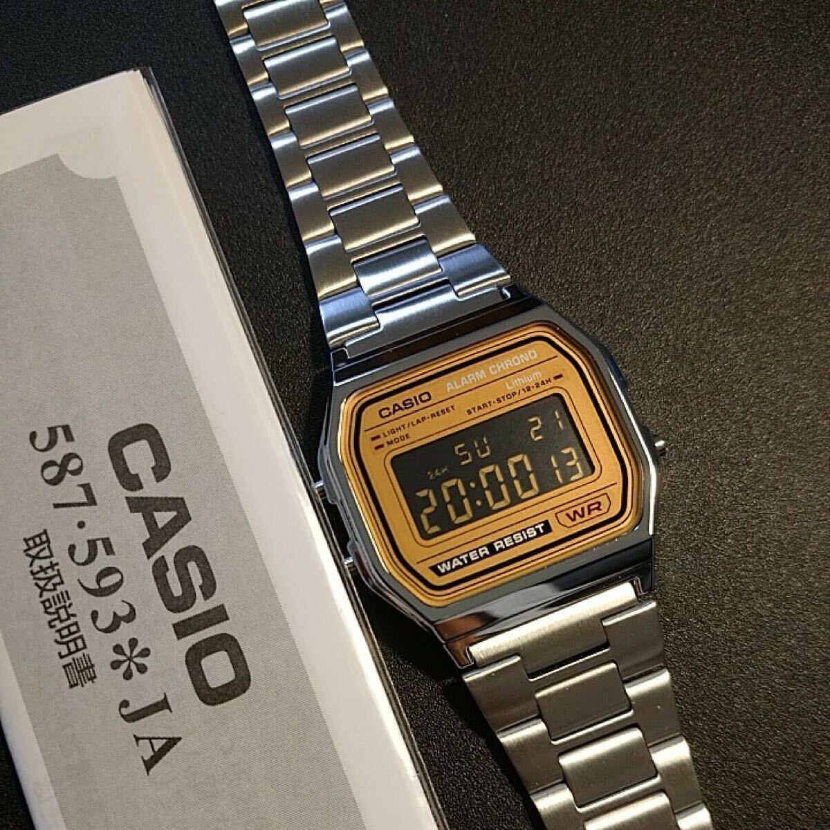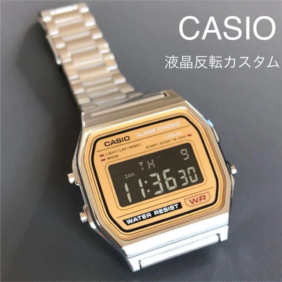 【新品/即決/送料込】カシオ チープカシオ デジタル 腕時計 黒 液晶反転 レトロ 調 ゴールド