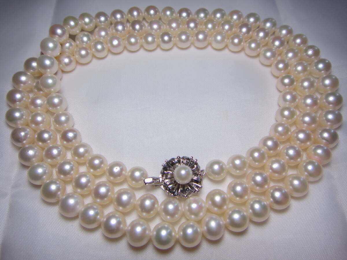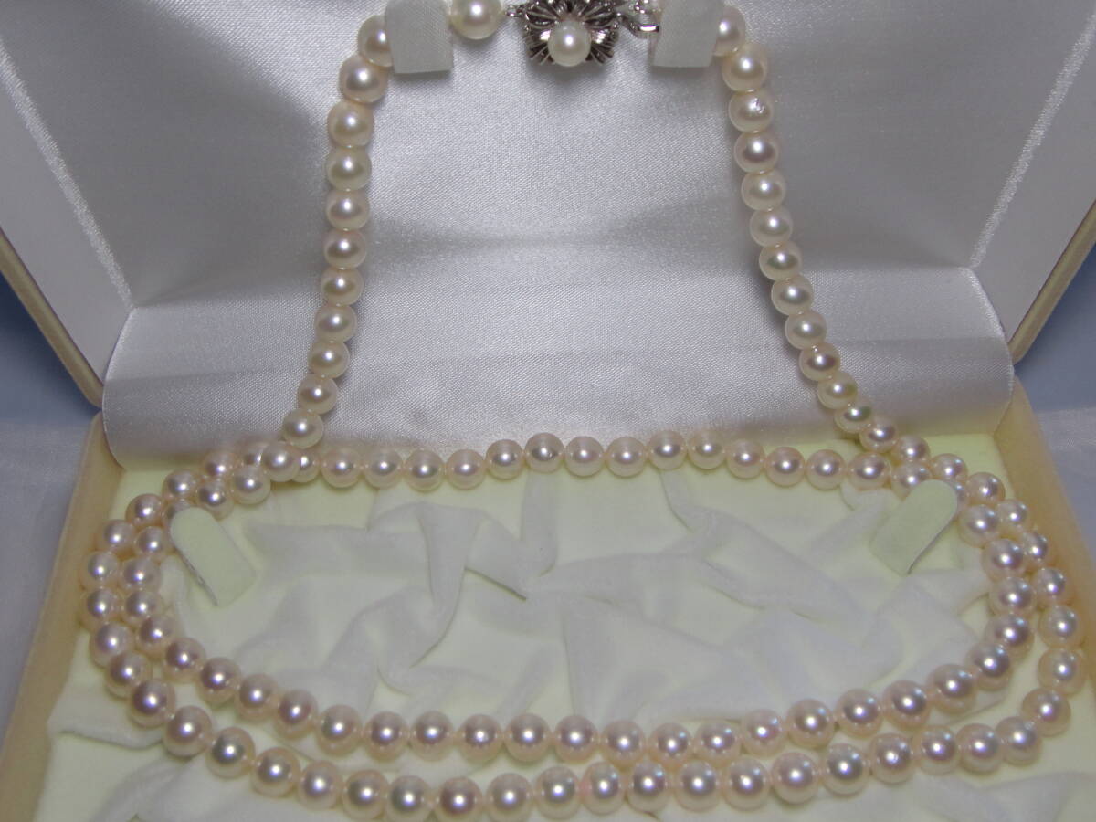 アコヤ真珠 本真珠 本パール ツヤテリ良 約6.9~7.4㎜ ロングネックレス 約85㎝ ケース付 ヴィンテージ Y725