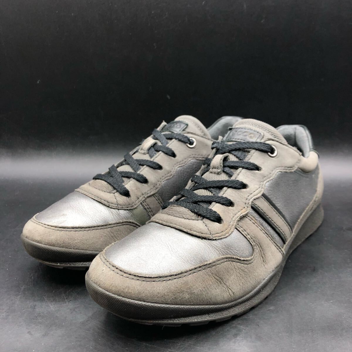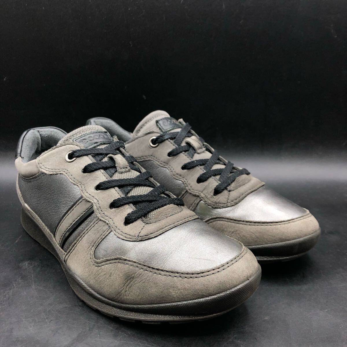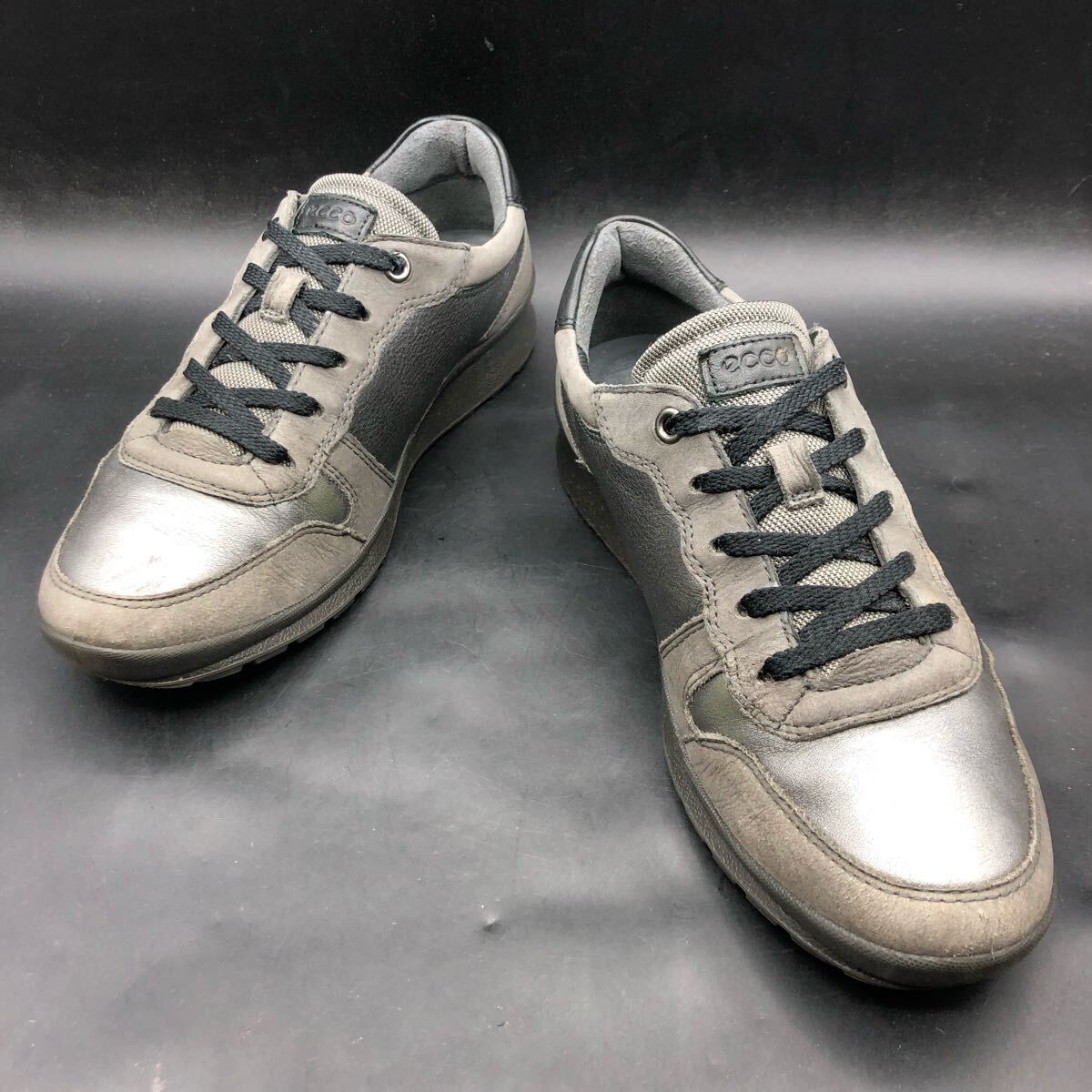 M4383 ecco エコー レザー ローカット スニーカー シューズ レディース 38/24.0cm相当 メタリック シルバー ダークグレー