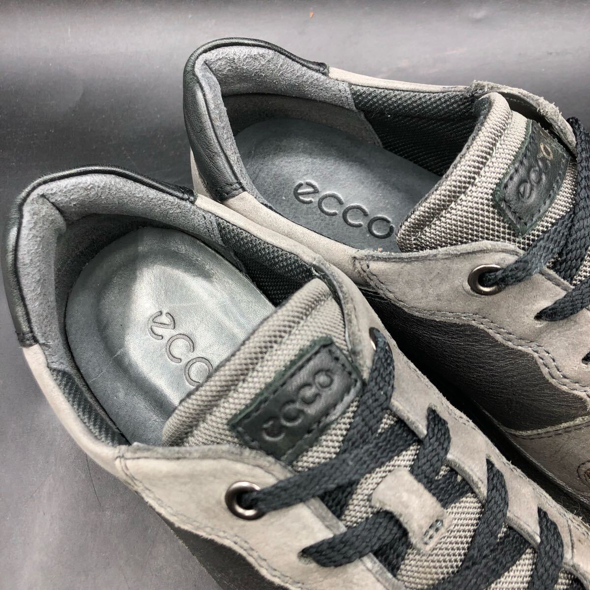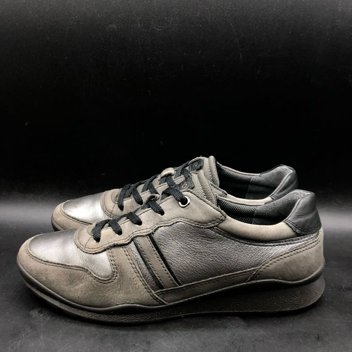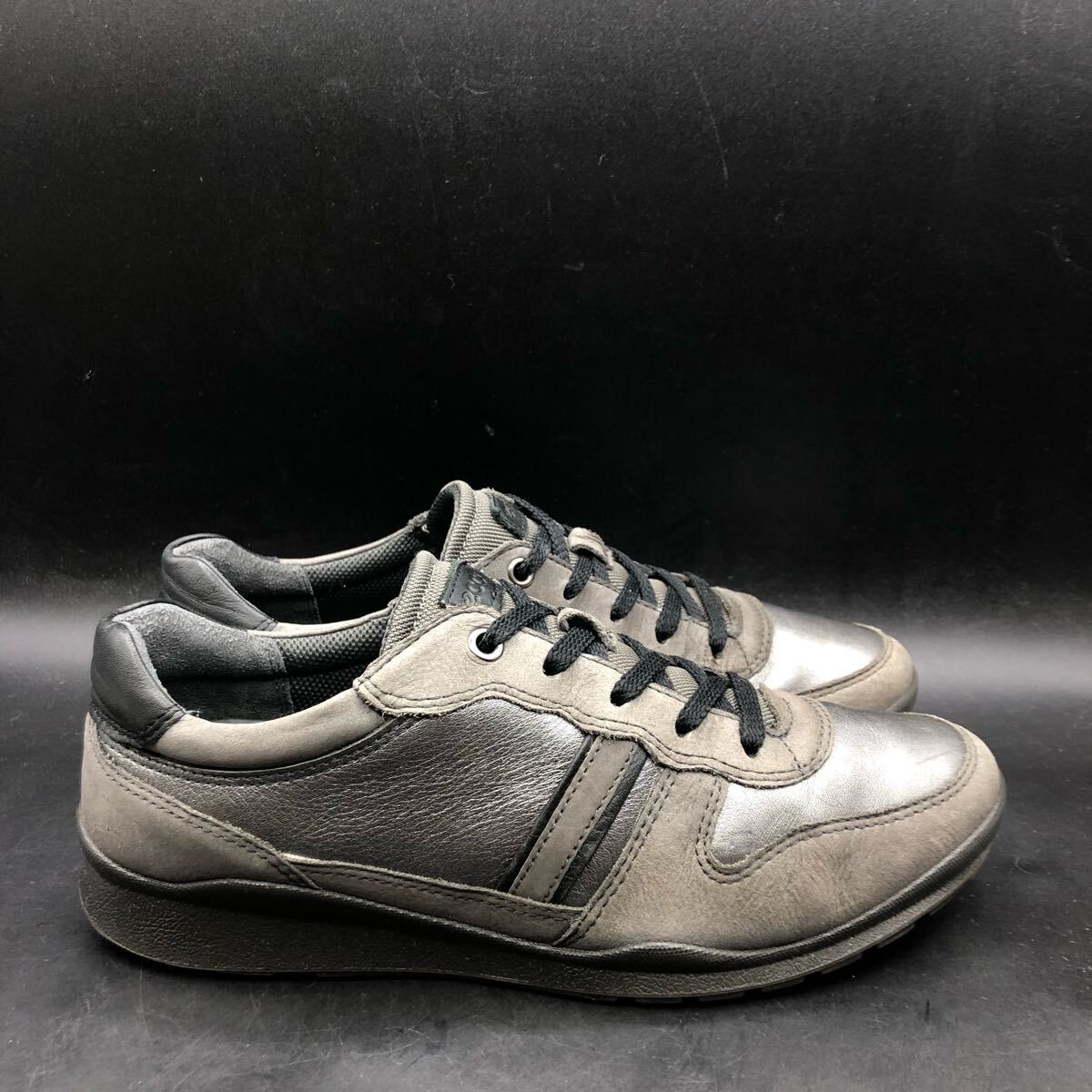 M4383 ecco エコー レザー ローカット スニーカー シューズ レディース 38/24.0cm相当 メタリック シルバー ダークグレー