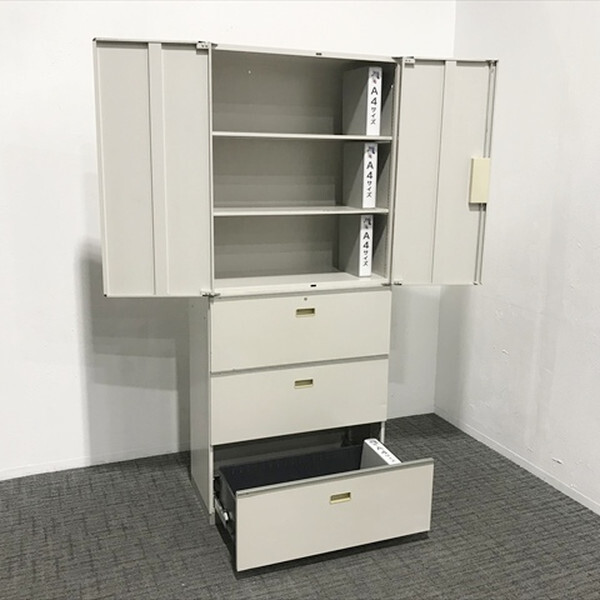 ■取り扱い番号 CU-874813C ■仕様 メーカー : イトーキ 製品名 : THIN LINE シンライン 色素材 : ホワイトグレーW 外寸 : 幅900mm 奥行き450mm 高さ2140mm ランク : Cランク ■特徴 上段:HTM-109HSS-WE 下段:HTM-109AAS-WE ベース付 棚板2枚 |
