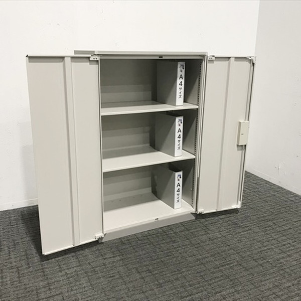 ■取り扱い番号 CR-874779B ■仕様 メーカー : イトーキ 製品名 : THIN LINE シンライン 色素材 : ホワイトグレーW 外寸 : 幅800mm 奥行き450mm 高さ1270mm ランク : Bランク ■特徴 ベース付 棚板2枚 天板:ライトグレーW A4サイズの書類を無駄なく大量に、しかも効率的に収納できます。扉は180°開閉できるため、狭い通路でも扉を気にせずに物の出し入れができます。 |