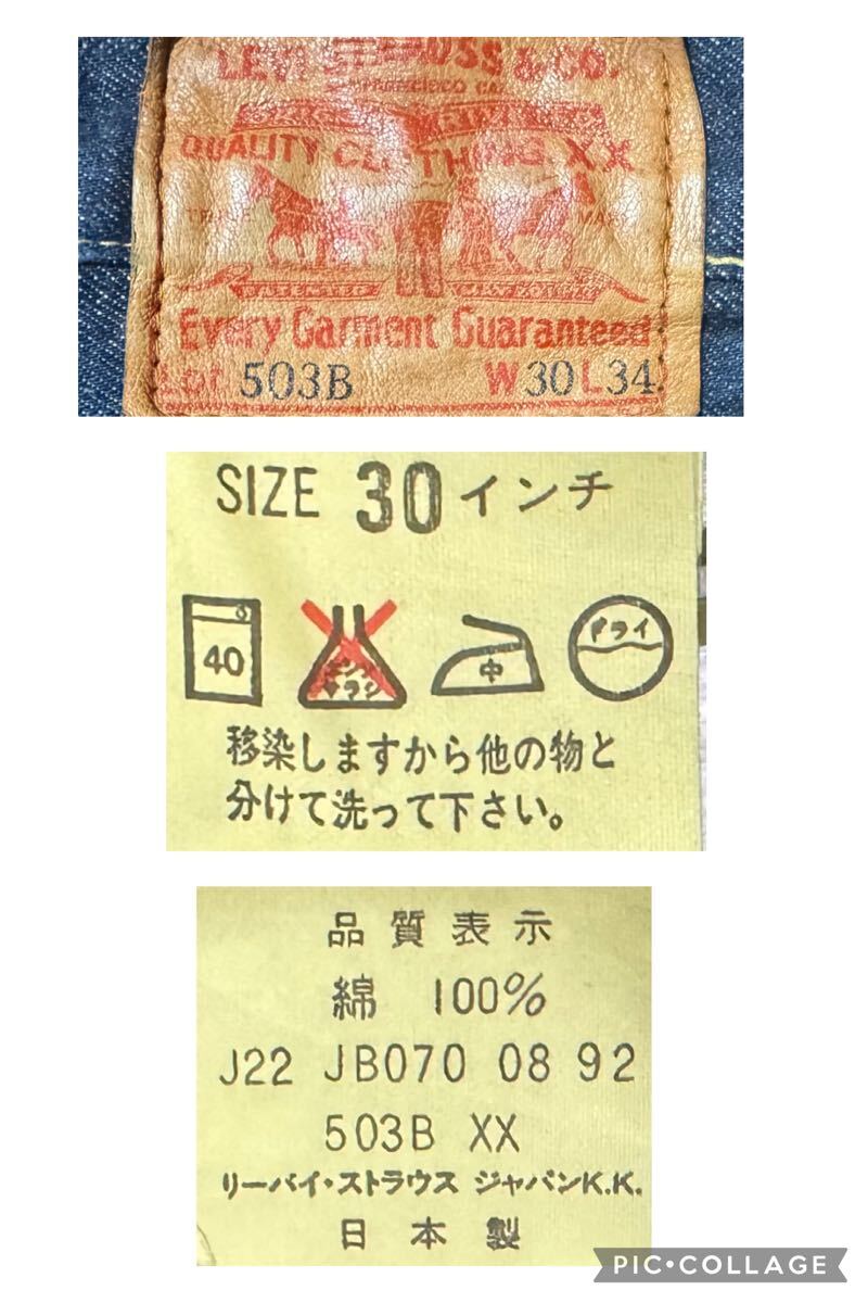 濃紺 LEVI'S 503B XX 90s 復刻 ビッグE デニムパンツ 赤耳 w30