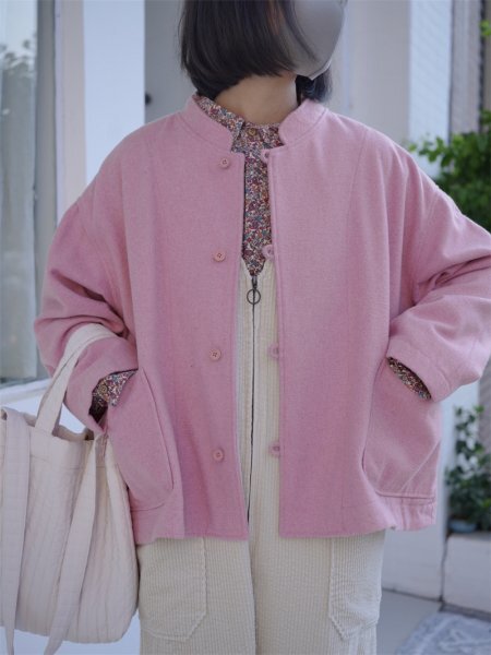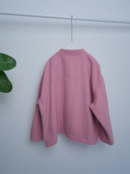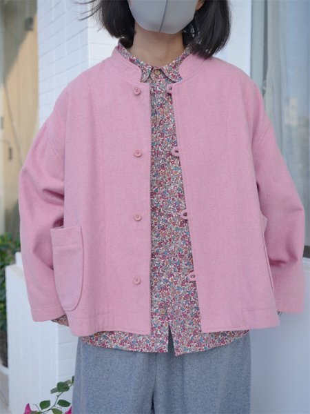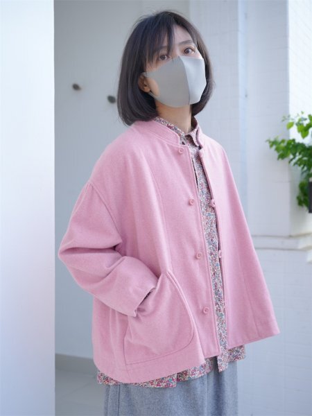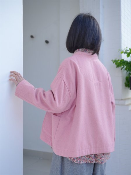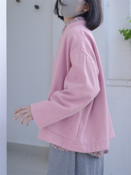 ps 0706 新作 先取り 羽織物 チュニック トップス フリーサイズ 高質 ウール混 スタンド襟 大きなポケット ナチュラル ゆったり ピンク