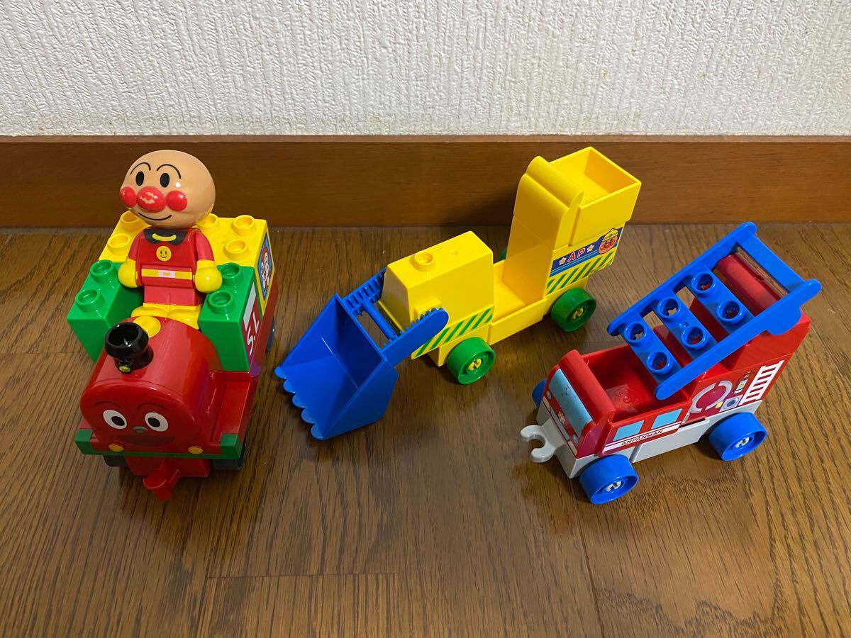ブロックで大好きな乗り物の組み替え(SLマン⇔消防車⇔ショベルカー)が楽しめます!乗り物に合わせて世界観も組み替えて(駅⇔消防署⇔工事現場)ごっこも楽しめます。