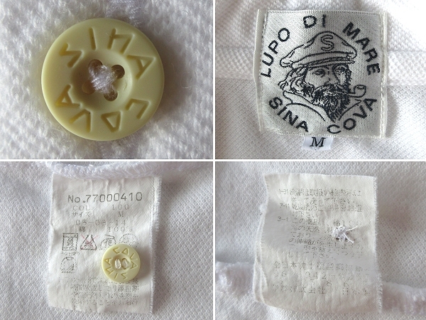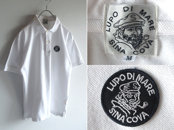 ネコポス対応 SINA COVA シナコバ 船長ロゴワッペン コットン 鹿の子 ポロシャツ M 白 ホワイト 日本製