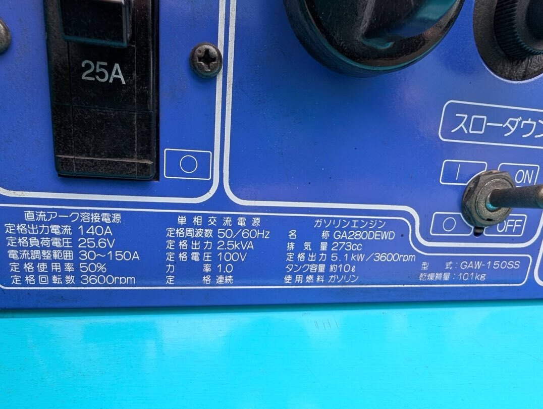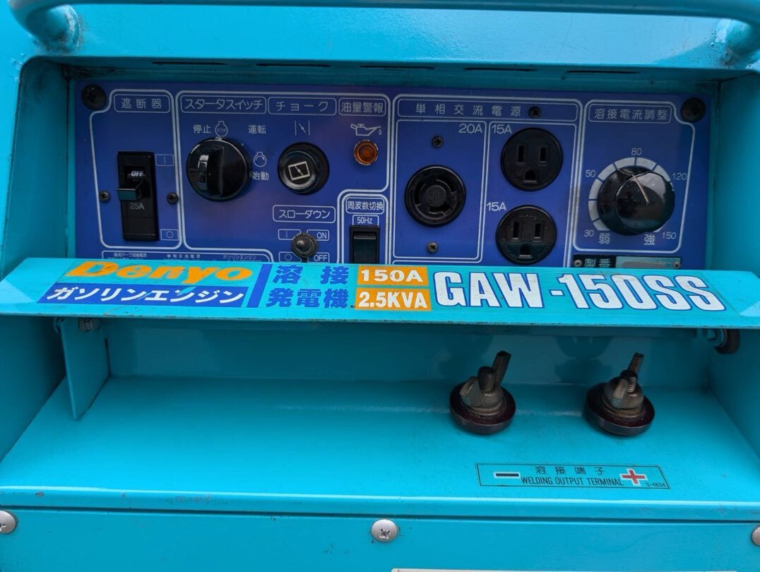 | 商品説明 | (即決)デンヨー発電、溶接・ウエルダー・GAW-150SS・整備済 です。 形式 GAW-150SS (リコイル、セル併用) ガソリン・4サイクル 50/60Hz(切り替え式) 重量101Kg 補助電源 100V 2.5KVA・25A 適用溶接棒 2.0~3.2mm バッテリー充電(YTX9-BS) エアーエレメント新品 燃料ホース新品 エンジンオイル交換 キャブレタ-オーバーホール 燃料タンク、コック清掃 分解、清掃、点検、調整 部分塗装(デンヨー純正) 動作OK(2.0~3.2mm溶接棒テスト済み)(発電テスト済み) 長さ702 幅495 高さ655 ※整備済ですので不具合ありません。 ※オークションシステムにより落札者様の電話番号の表記がしなくなり、発送の際に電話番号が必要の為、 落札後、必ず取引ナビにて電話番号送って頂く様にお願いします。 |