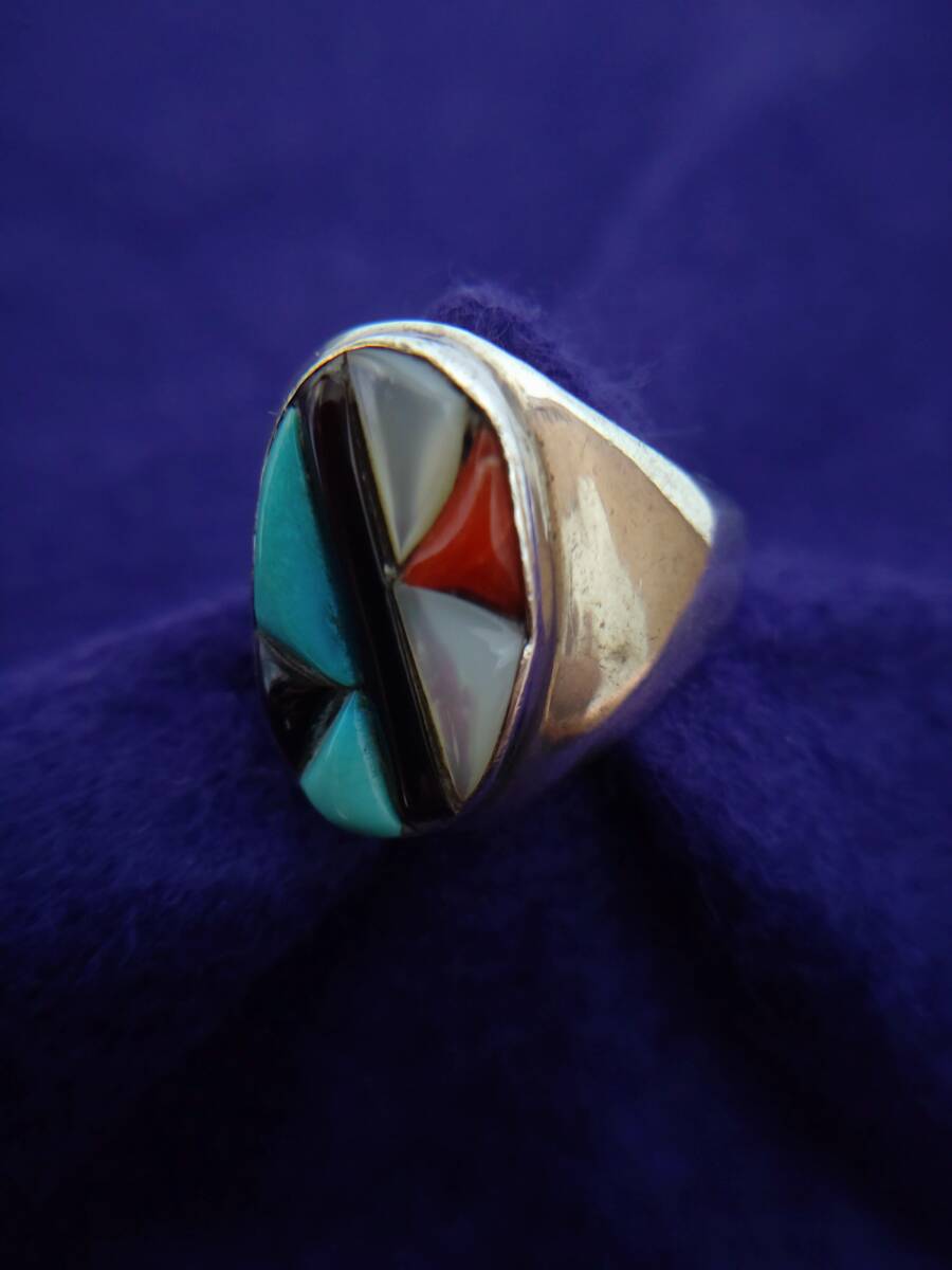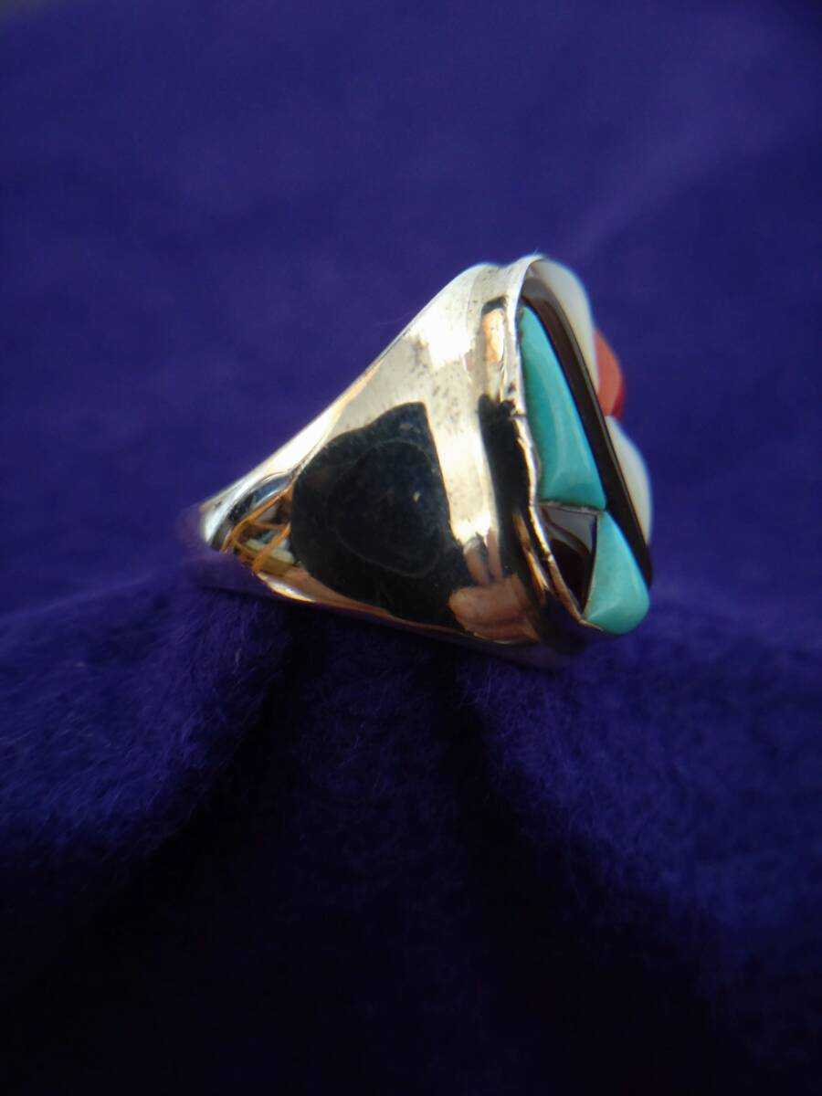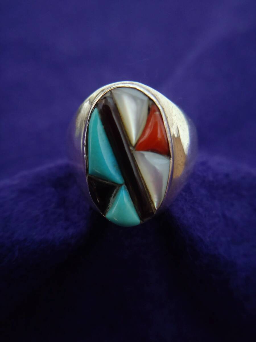 ターコイズ、オニキス、レッドコーラルなどをあしらったシルバー925指輪です。