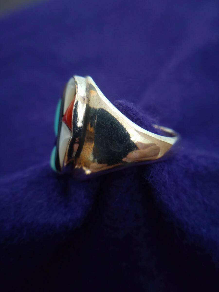 R&GT ズニ ターコイズ 20号 オニキス レッドコーラル リング SV925