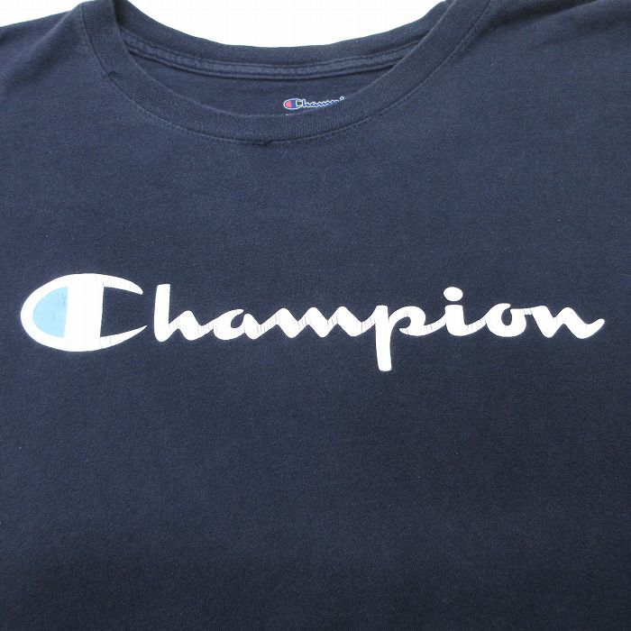 【商品名】 XL★古着 チャンピオン Champion 長袖 Tシャツ メンズ ビッグロゴ 大きいサイズ クルーネック 紺