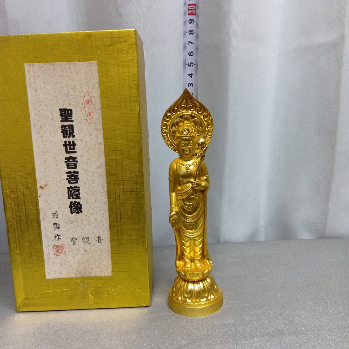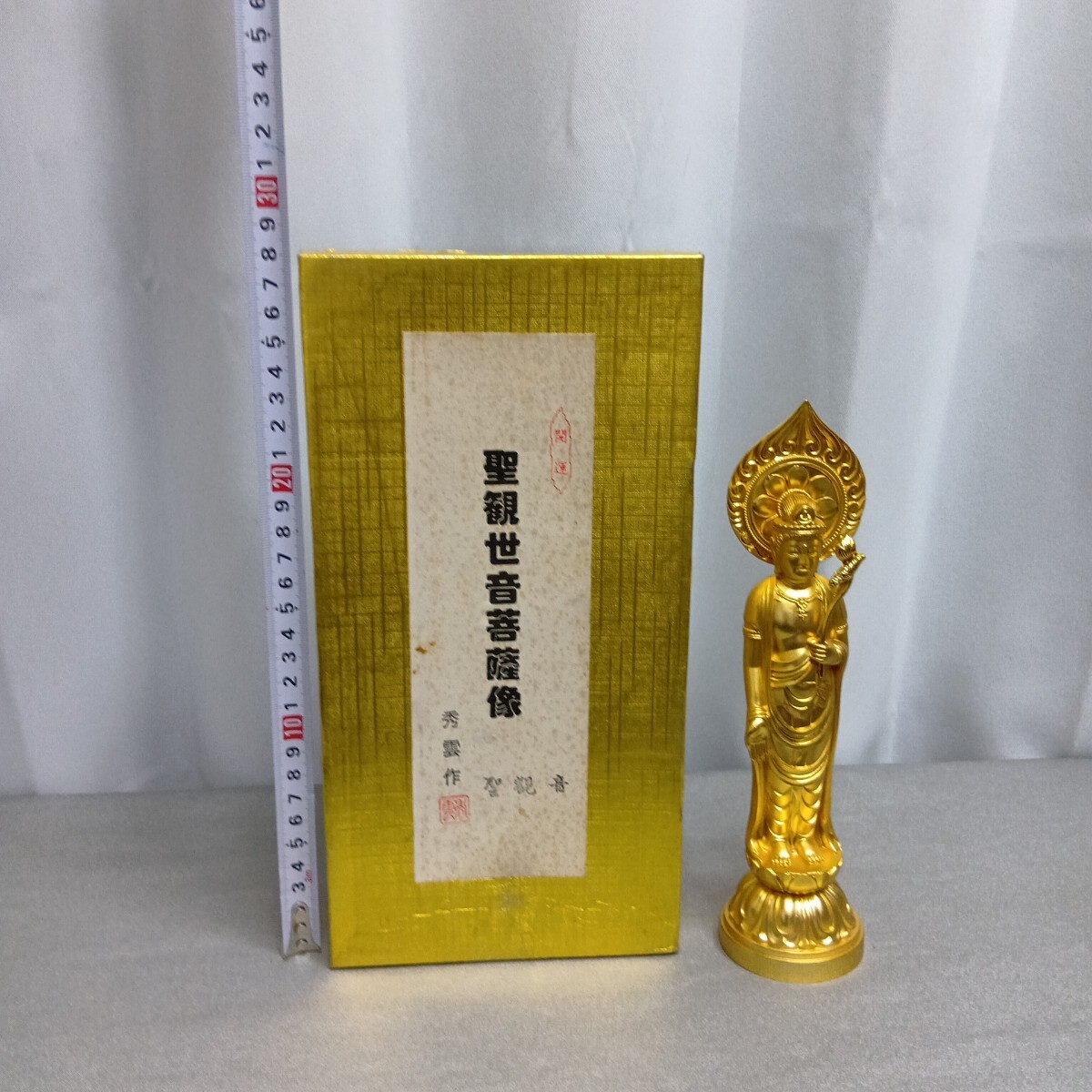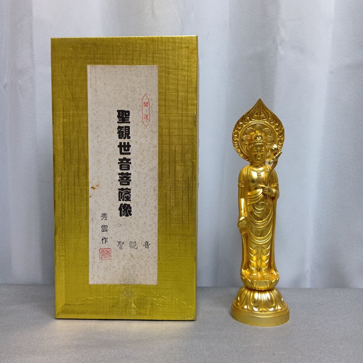 聖観音立像 在銘 高さ約23cm 重い 唐金 真鍮製 良く画像をご覧頂き入札をお考え下さい