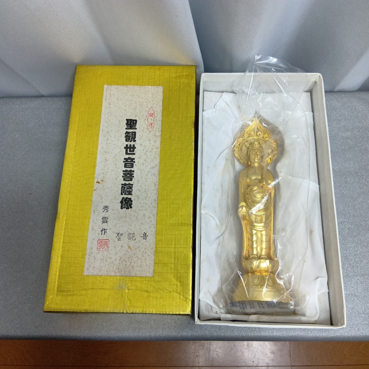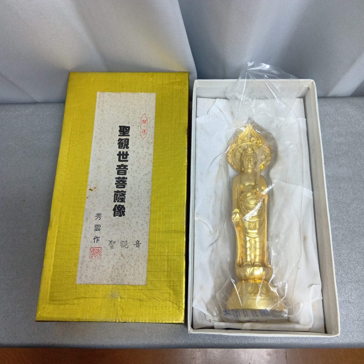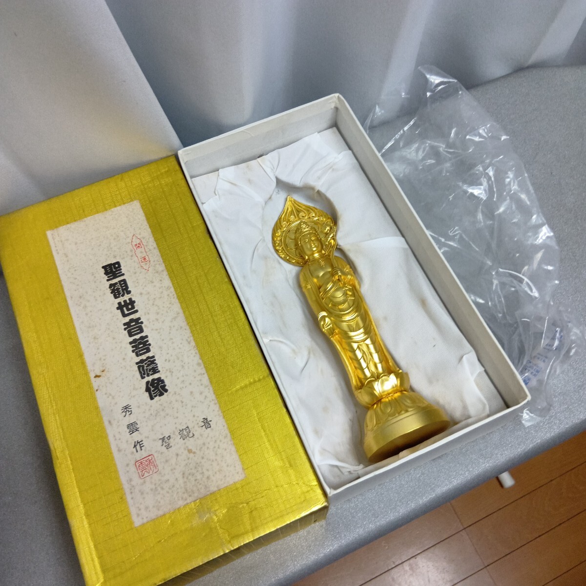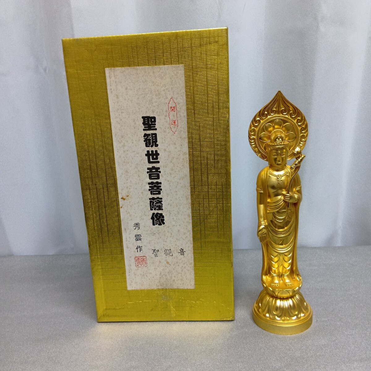 聖観音立像 在銘 高さ約23cm 重い 唐金 真鍮製 良く画像をご覧頂き入札をお考え下さい
