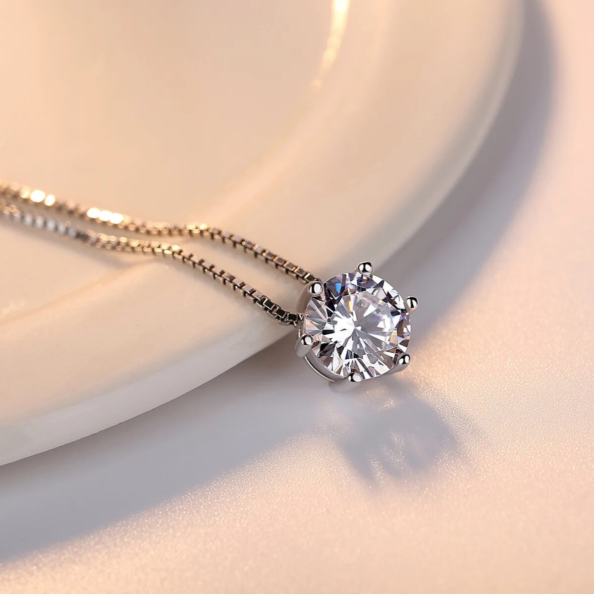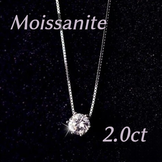 輝きが際立つ2カラットのラウンドカットモアサナイトを使用した、エレガントなネックレスです。
