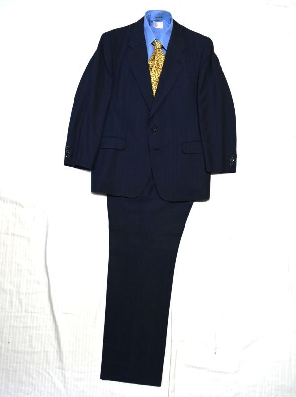 #★DORMEUIL★英国高級ブランドのドーメル★濃紺ネイビー★英国生地が持つ頑丈でしっかりとした質感と機能性#着心地の良い2釦スーツL春夏##