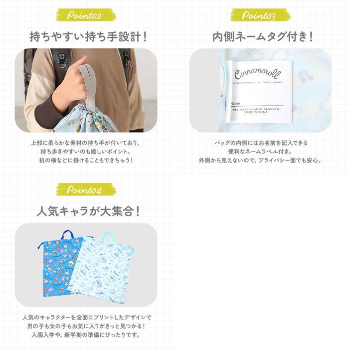 | 商品説明 | ・・体操着やお道具入れにぴったり。サラッと軽い巾着(Lサイズ)が登場。 ・【開閉がスムーズな巾着型】 ・サイドの巾着紐をキュッと絞るだけ!お子さまでも簡単に開閉が可能。中身が飛び出すこともなく安心。 ・【手提げとしても使えて便利】 ・上部に持ち手が付いており、サッと手持ちも可能。机の横などに掛けることもできちゃう! ・【友達とお揃いでも大丈夫】 ・内側のタグに名前を記入できるから、友達との取り違いを防げるのが嬉しい! ・【お手入れラクラク】 ・汚れが気になったら手洗いOK。いつも清潔をキープ。 ・【新学期準備におすすめ】 ・お気に入りがきっと見つかる!キャラクターの絵柄を全面にプリントしたデザイン。新生活の準備アイテムにリストアップ☆ |