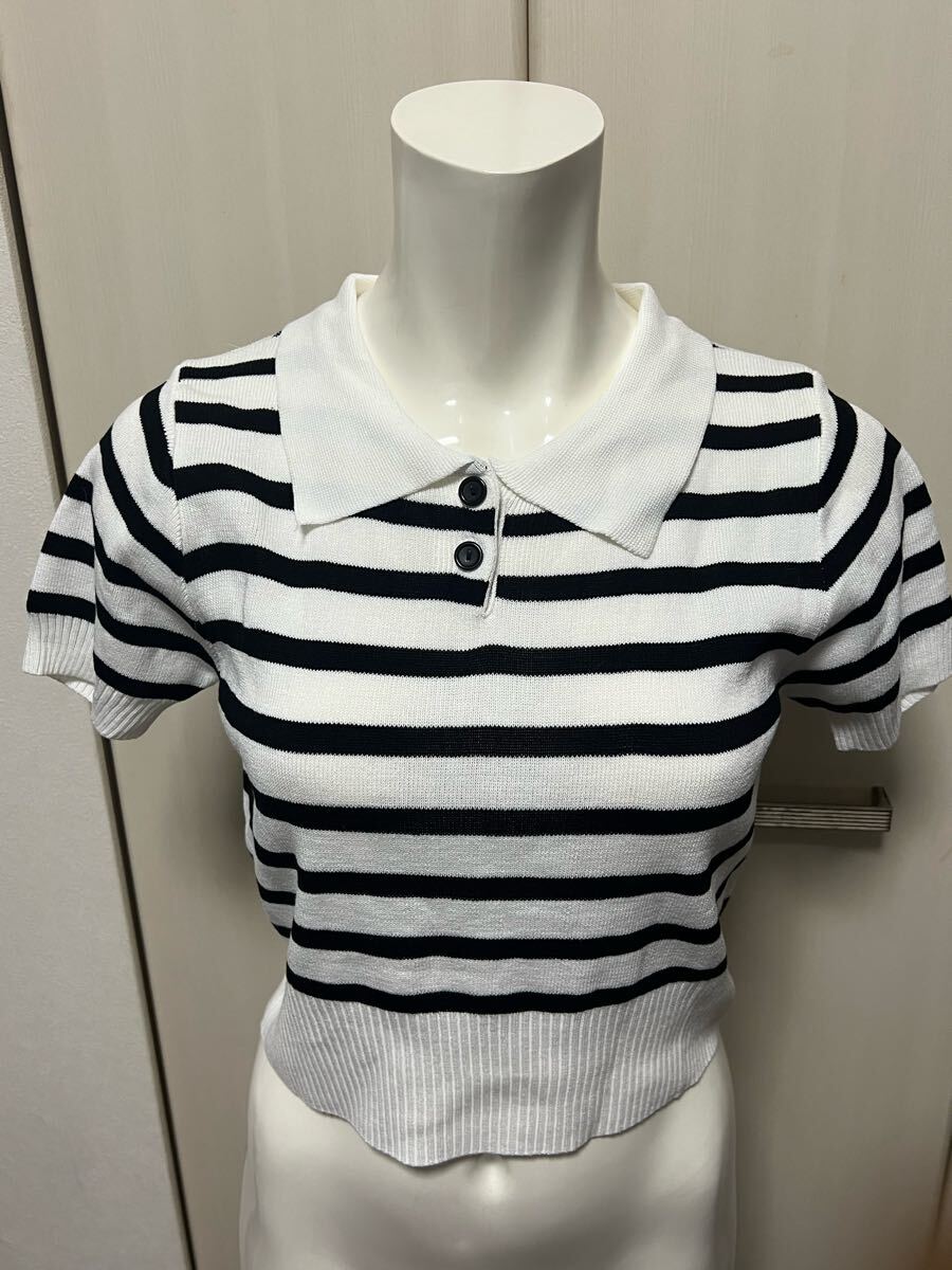 ■水通しのみ■GAL グレイル ボーダー柄ポロニットトップス[ac2170]  オフホワイト Mサイズ